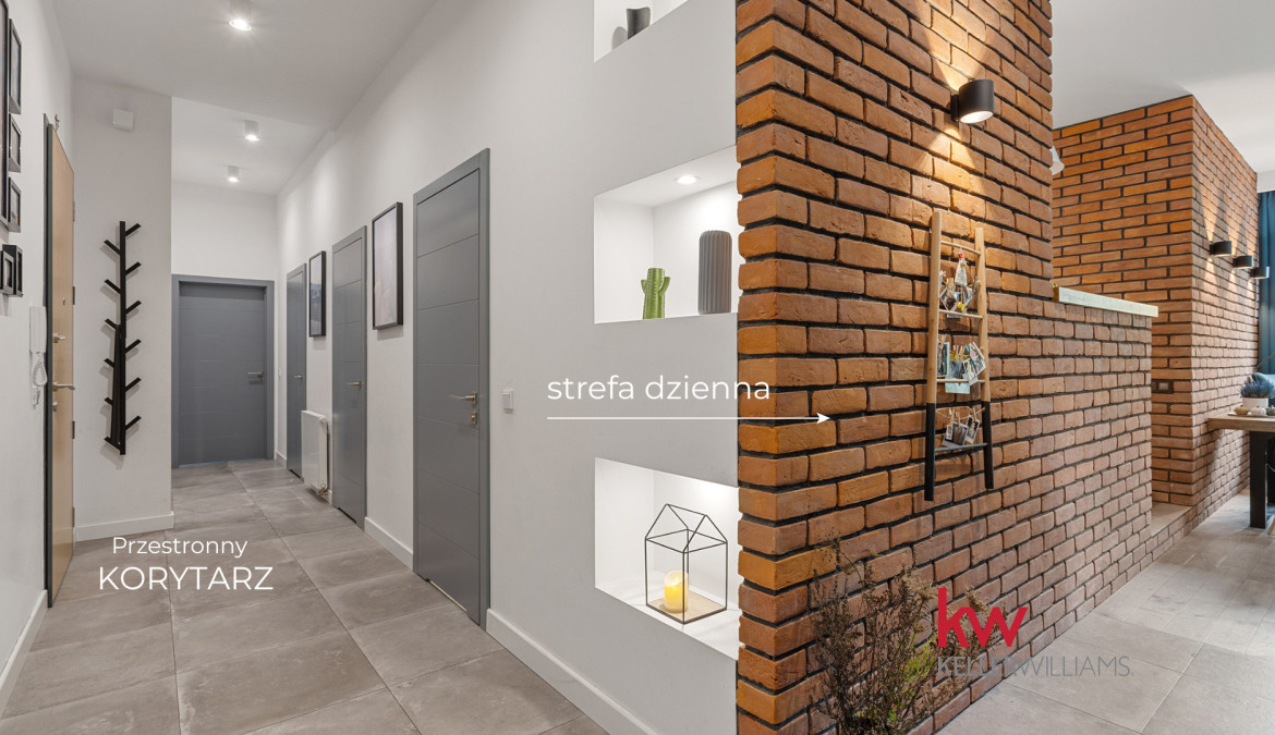 Przestrzeń z rozmachem. Wysokie sufity, wyraźnie wydzielone strefy i proporcje, które dają wrażenie domu, nie mieszkania.