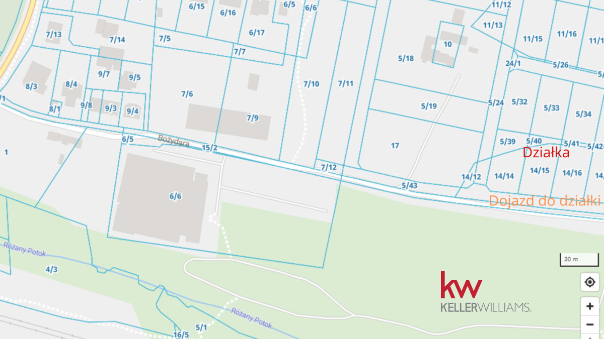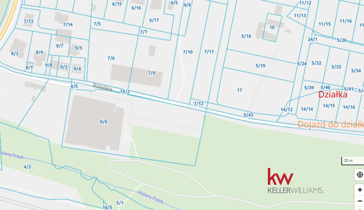 Działka znajduje się na spokojnej ulicy Bożydara w sąsiedztwie zadbanych domów jednorodzinnych.