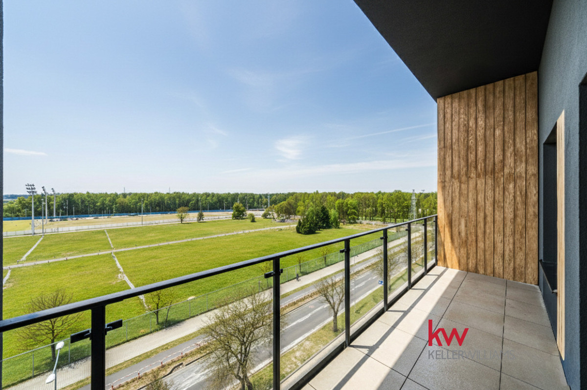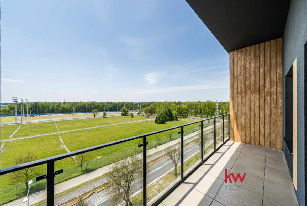 * Relaks: Duża loggia 8,81 m² z panoramicznym widokiem na zieleń.