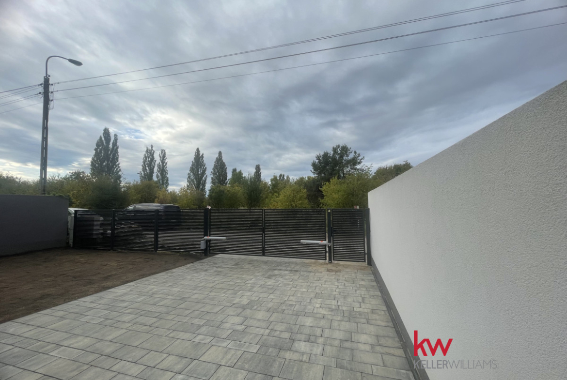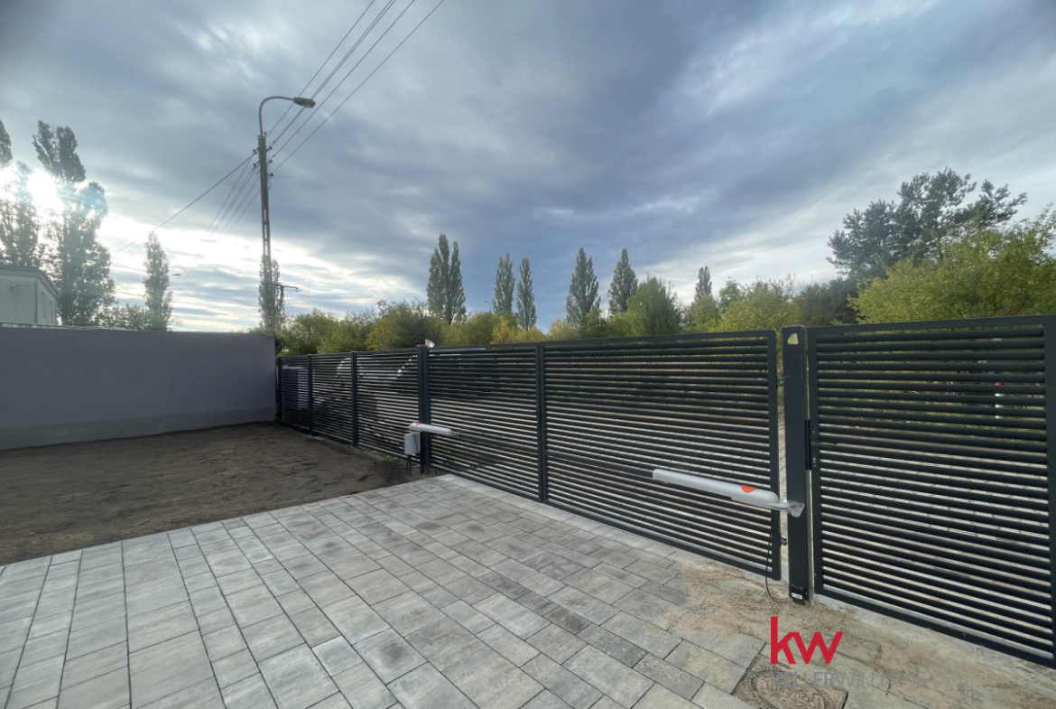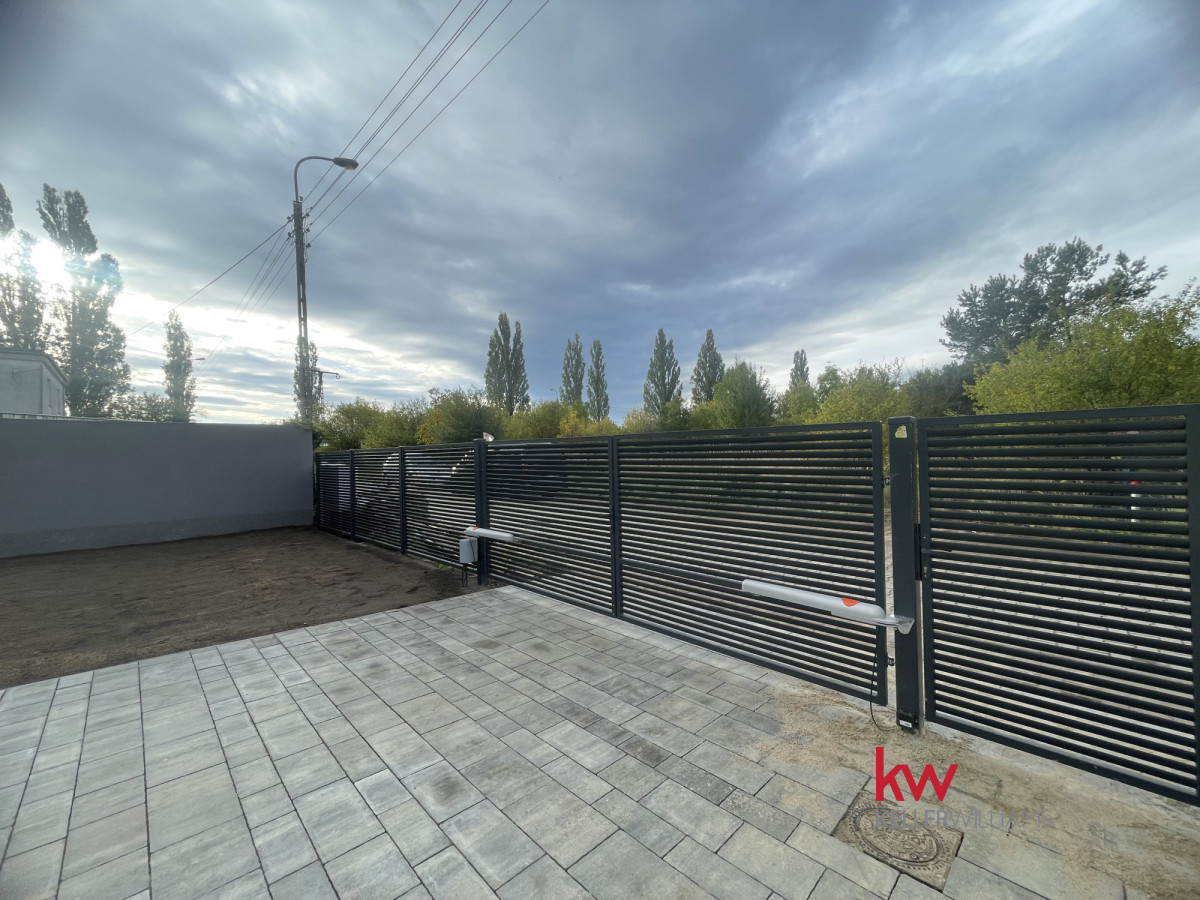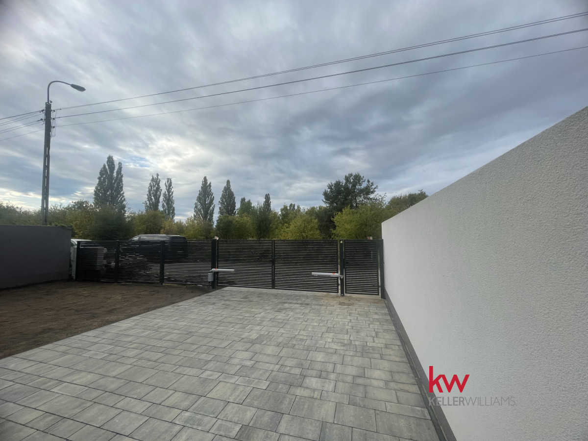 Cała posesja jest ogrodzona, wyposażona w automatyczną bramę wjazdową, wyłożona kostką betonową, z tarasem i miejscem na zieleń.