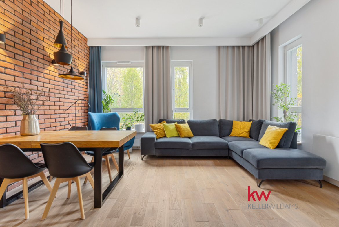 Przestrzeń z rozmachem, duże okna, wydzielone strefy.