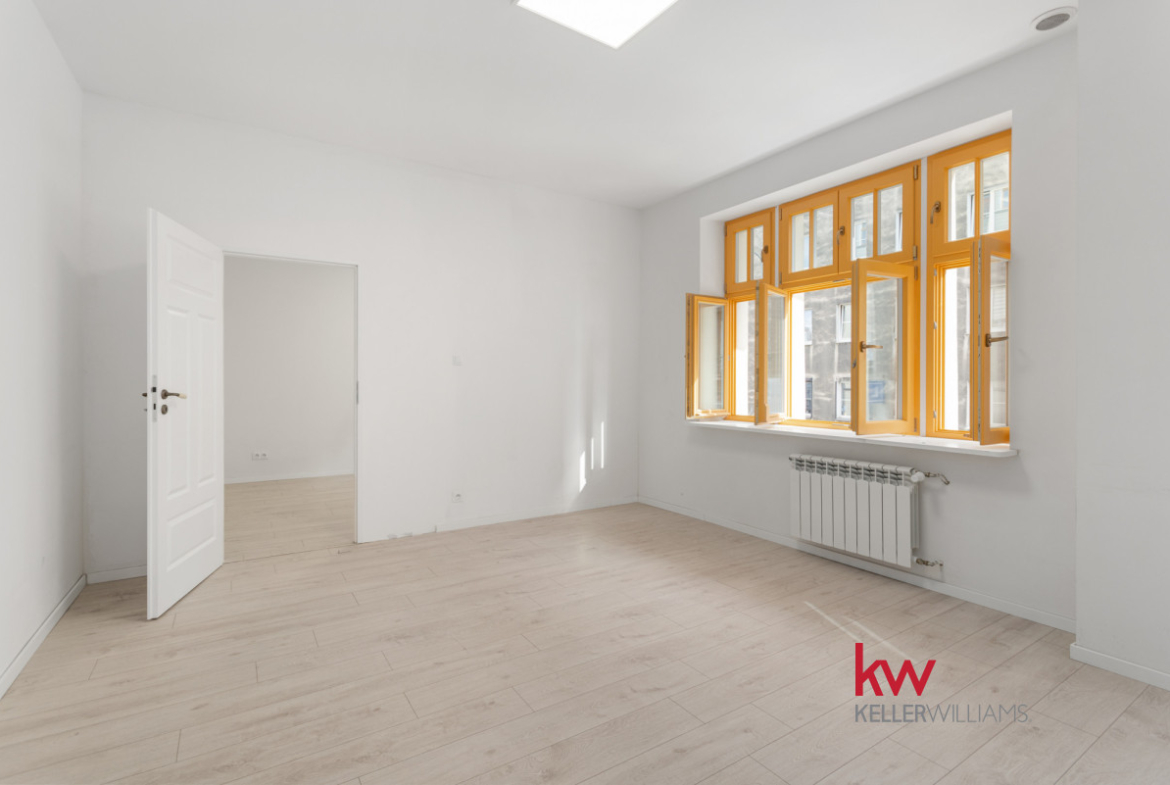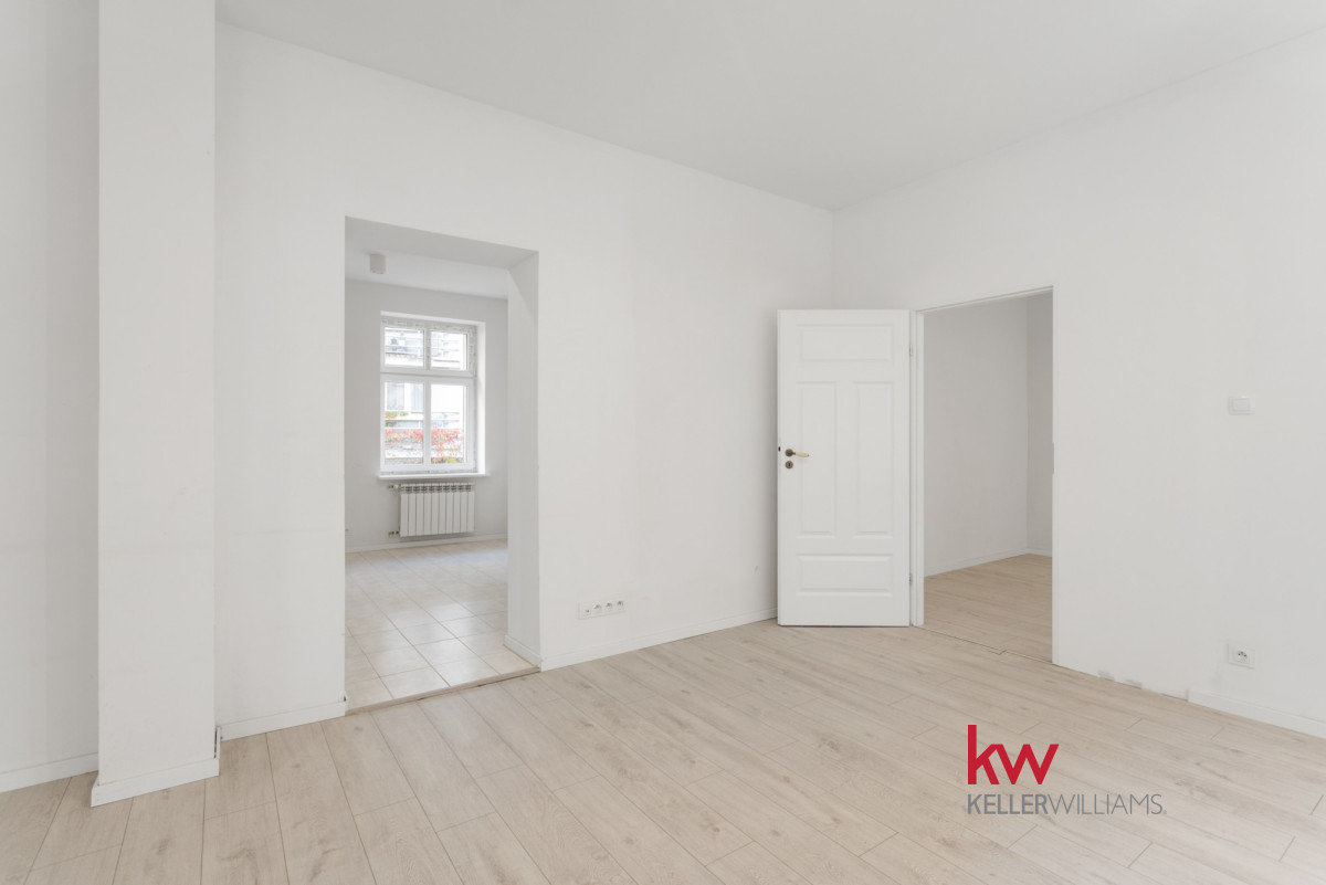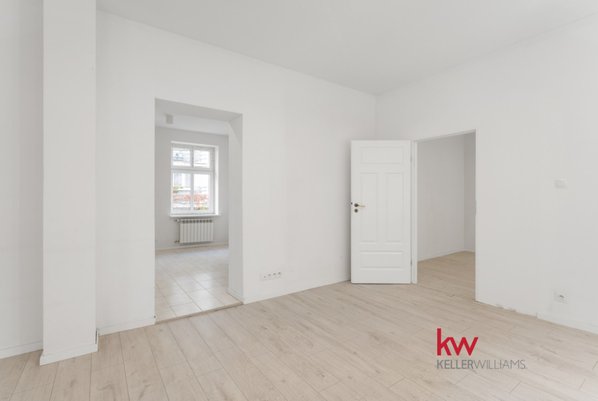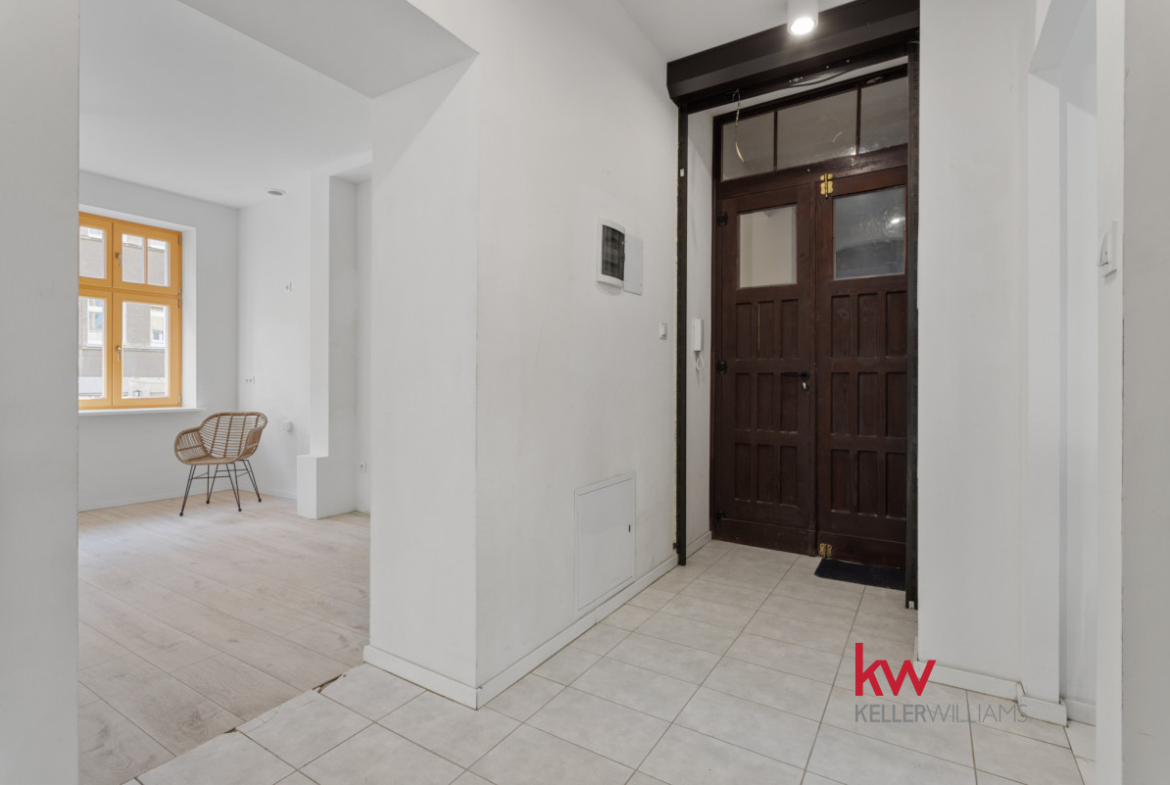 Kamienica po rewitalizacji – z zachowaną oryginalną architekturą, wysokimi sufitami i unikalnymi detalami.