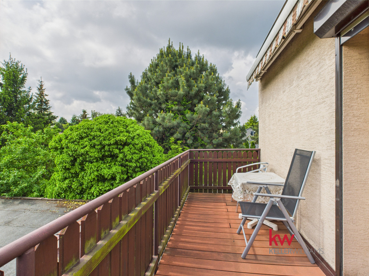 – taras na piętrze, z markizą, idealny na poranną kawę