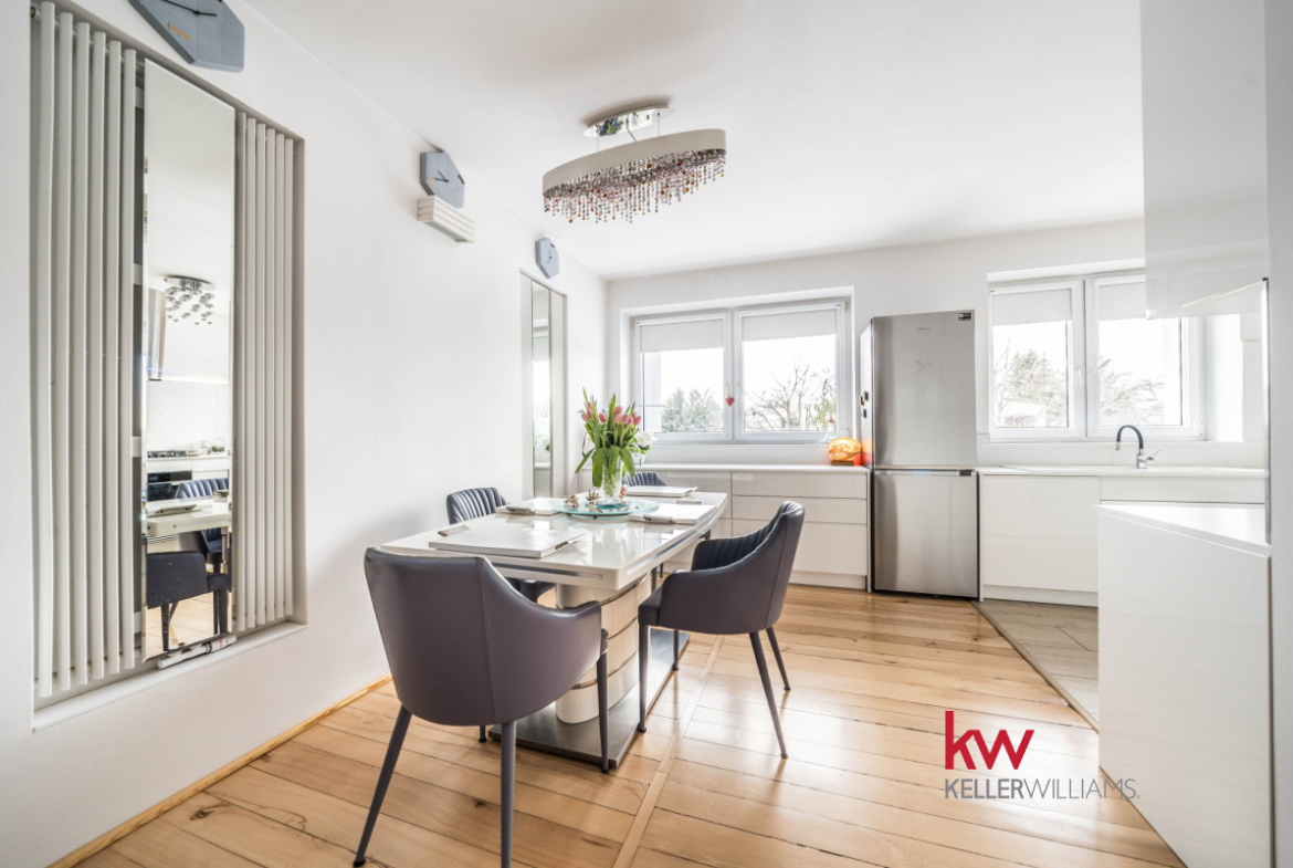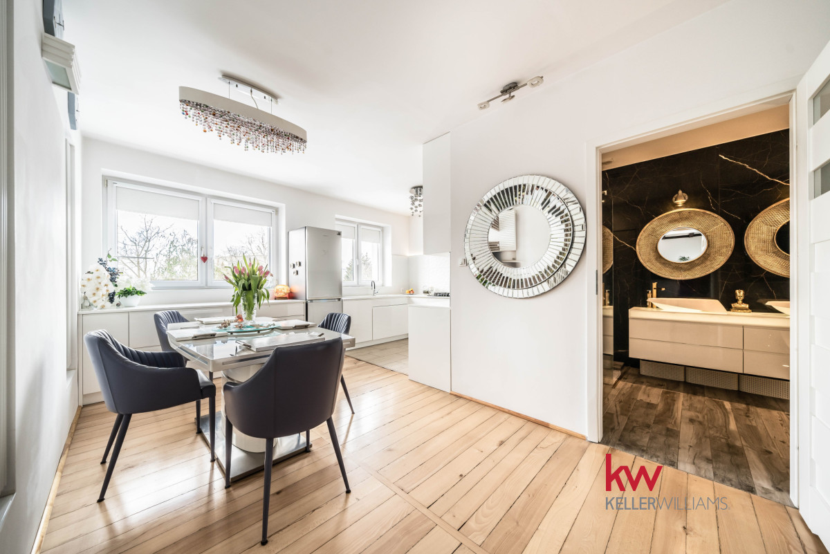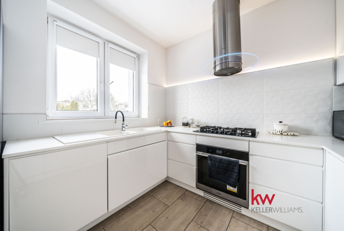 ✔ Duża funkcjonalna kuchnia z jadalnią (nowoczesna zabudowa, sprzęt AGD Whirlpool)