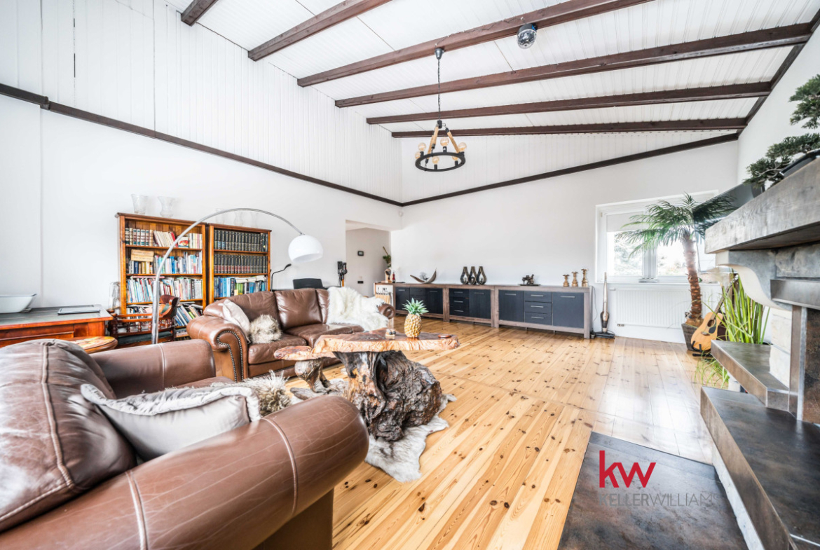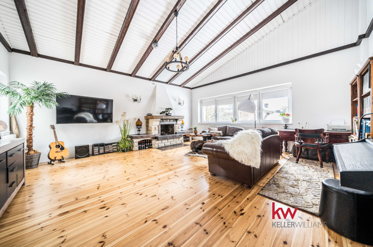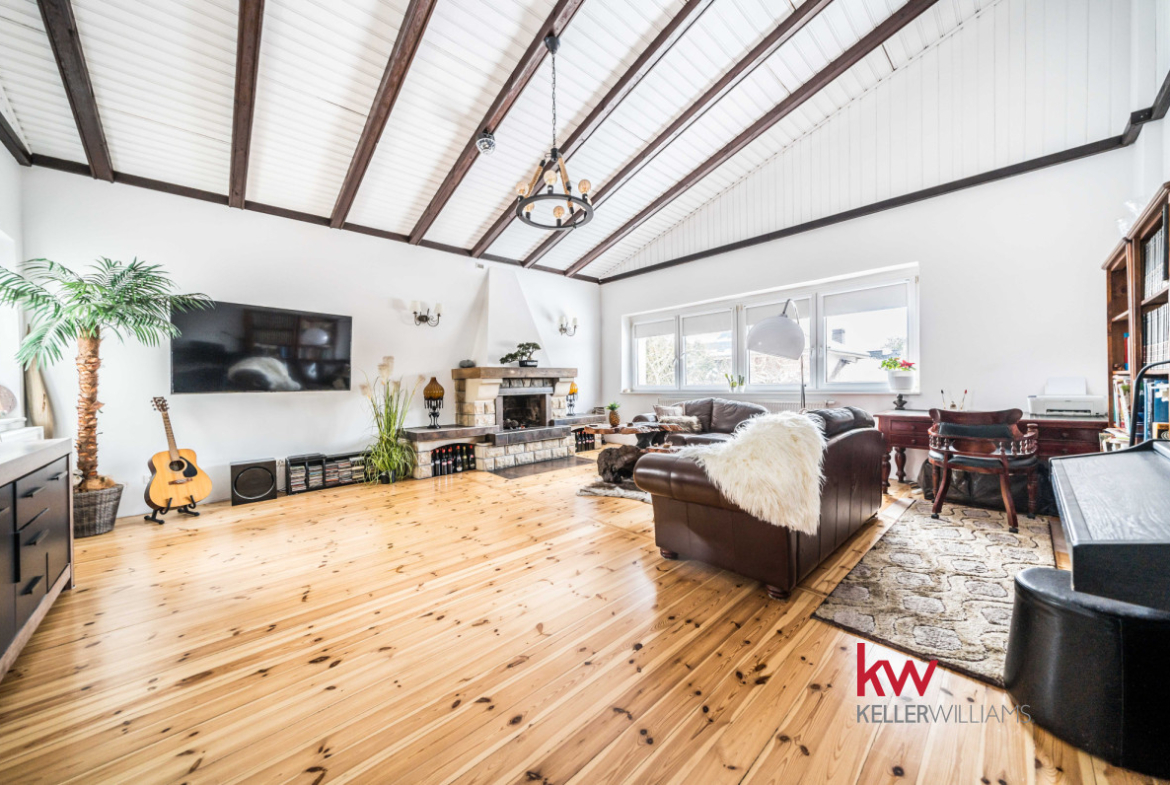 ✔ Salon z kominkiem i otwarta przestrzeń: 41 m², wys. do 4,5 m