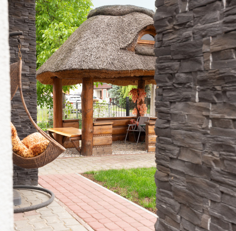 ✔ Altana z bali, kryta strzechą, z doprowadzonym prądem