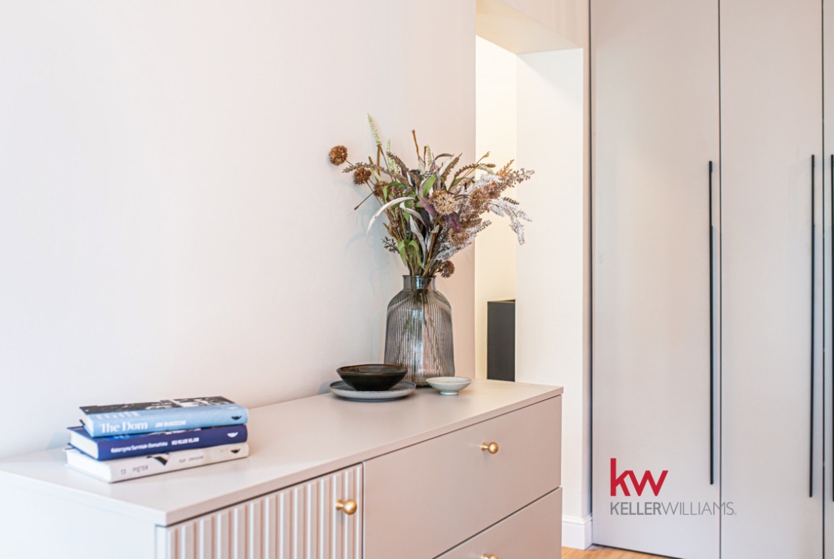- nowoczesna kuchnia z zabudową na wymiar i nowym AGD (płyta indukcyjna, zmywarka, piekarnik, lodówka),