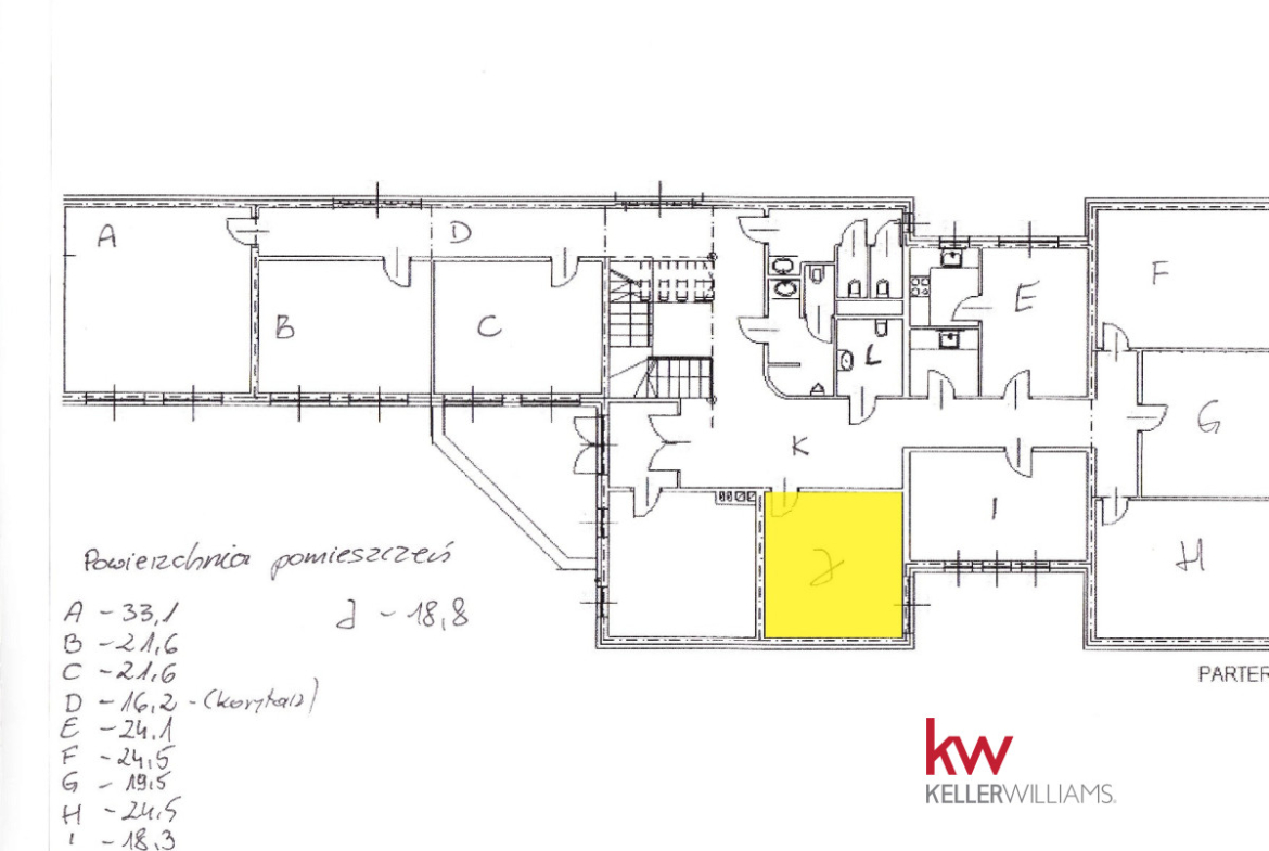 Ogłoszenie dotyczy pomieszczenia oznaczonego na rzucie literą J.