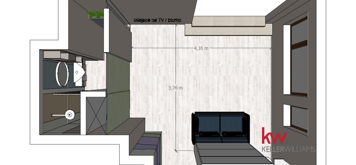 ● Miejsce na biurko lub komodę RTV – idealne dla osób pracujących zdalnie