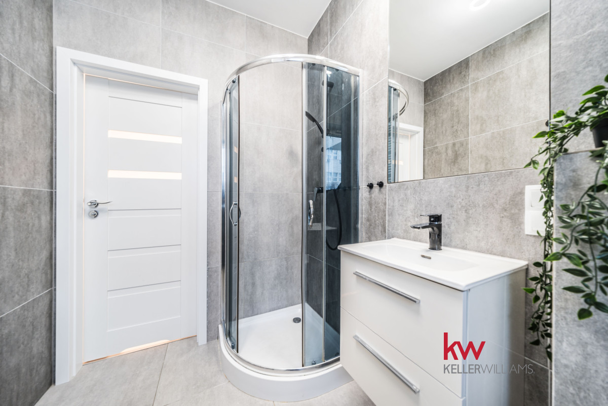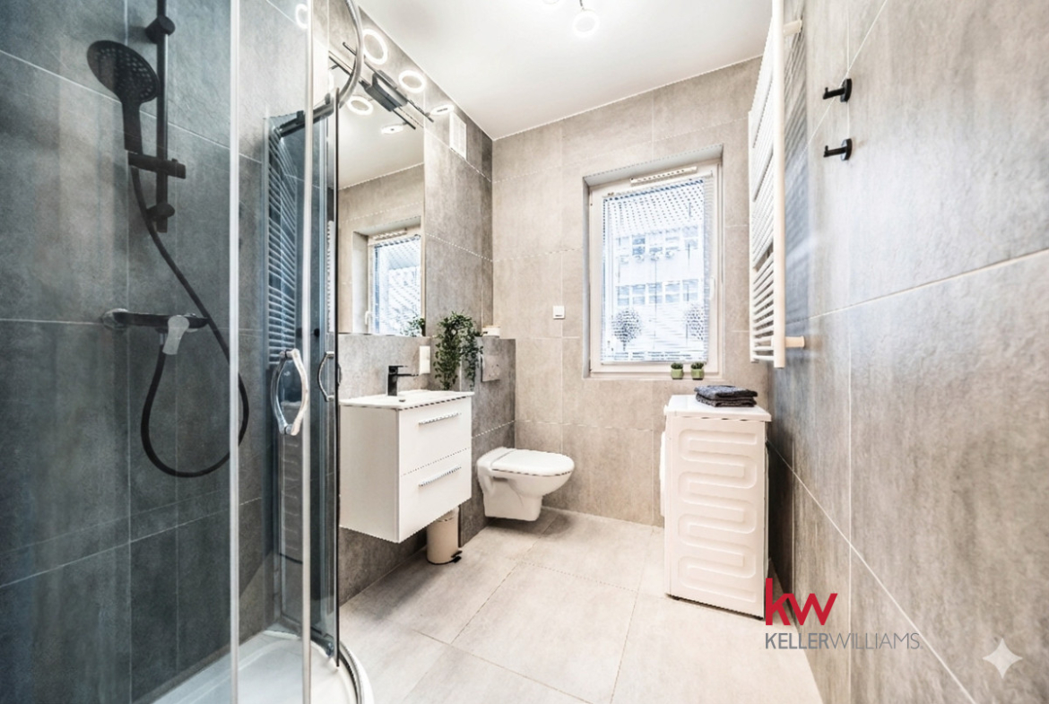 * Wnętrze nowoczesne, łazienka z oknem, co zapewnia świetną wentylację i dostęp do światła dziennego.
