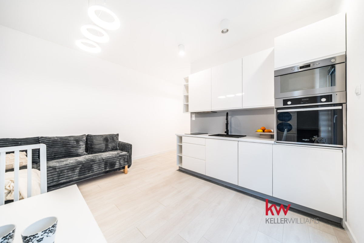 * Salon z aneksem kuchennym, ustawny, z bezpośrednim wyjściem na duży balkon.