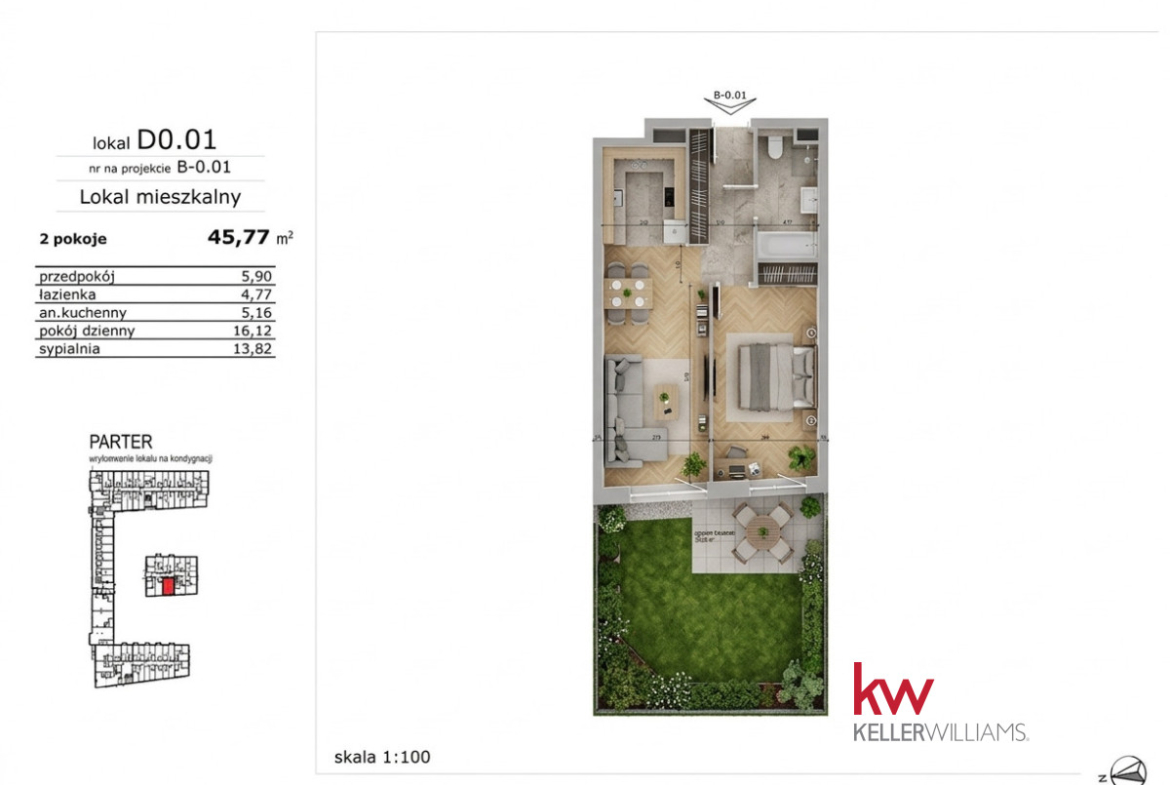 - Piętro: parter z ogródkiem
