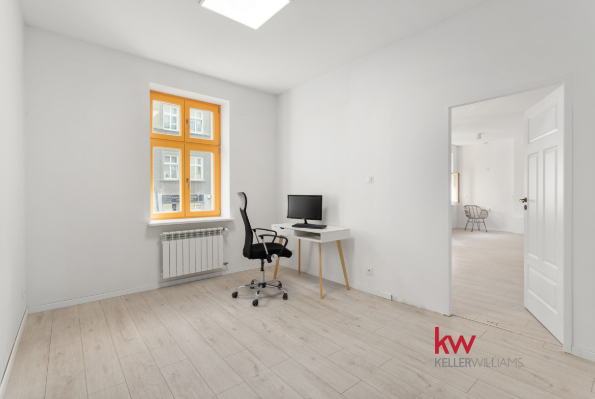 * elastyczna przestrzeń – łatwa aranżacja – układ 3 pokoi, wysoki sufit, duże okna i częściowo zachowane oryginalne detale pozwalają stworzyć wnętrze na własnych zasadach