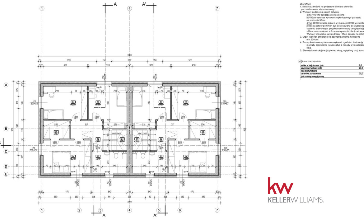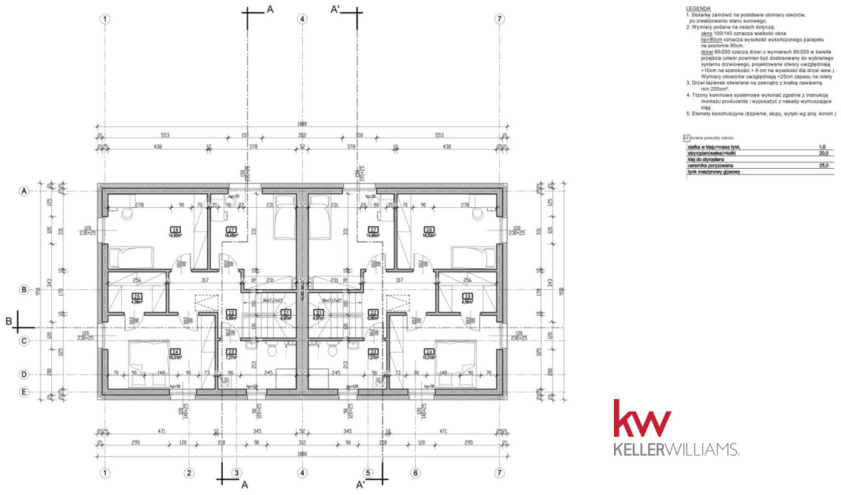 + wysokie pomieszczenia, brak skosów