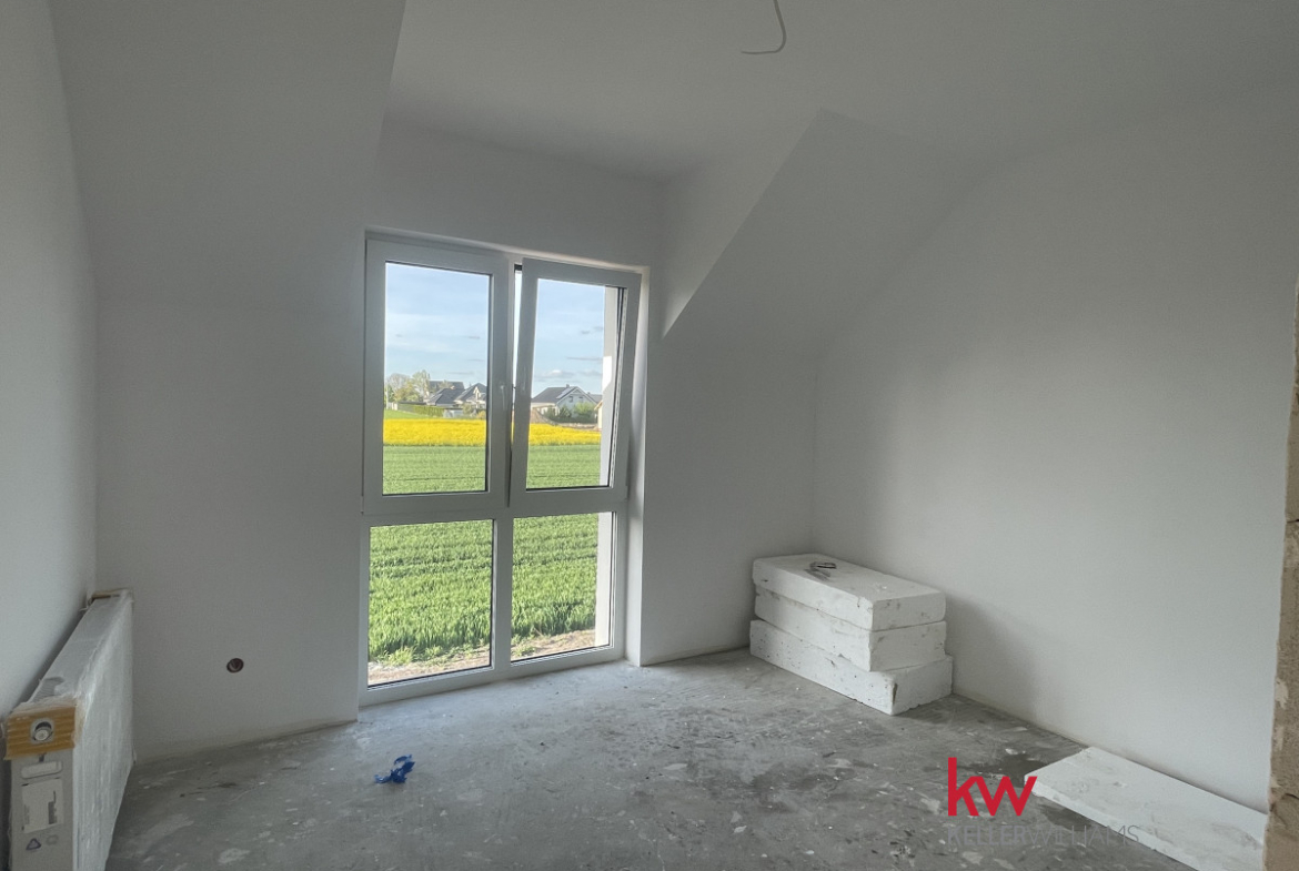Rozkład pomieszczeń jest bardzo funkcjonalny, salon z wyjściem na taras i wydzielonym miejscem na kuchnię z oknem, pomieszczenia ustawne, dobrze naświetlone.