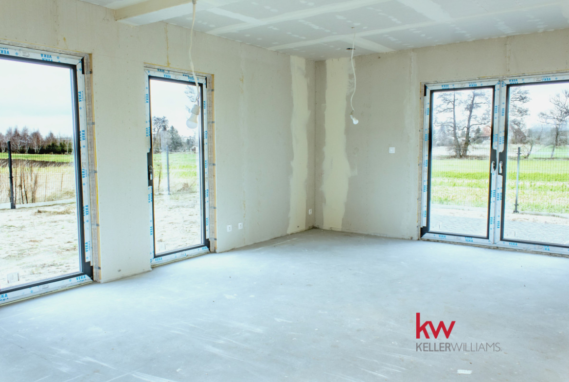 Przedstawiam Państwu przepiękny całkiem nowy energooszczędny dom w stanie deweloperskim który znajduje się w Robakowie przy ruchlwej Ul Poznańskiej.
