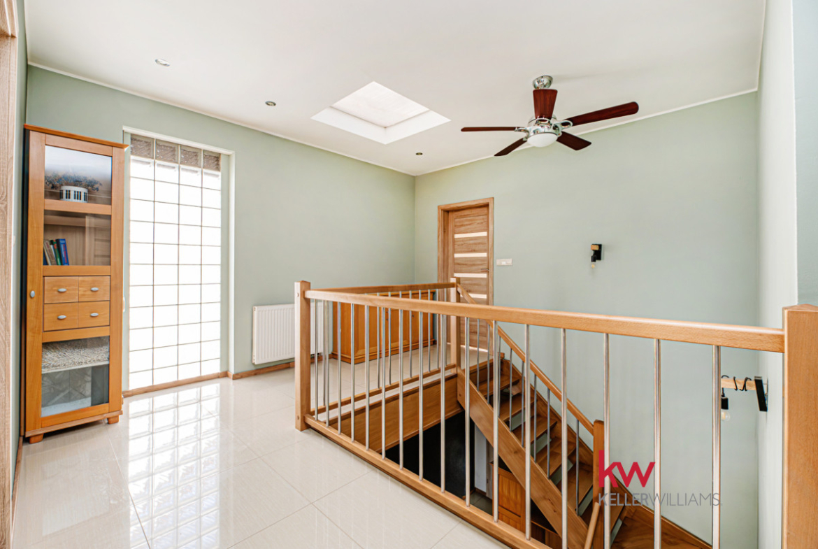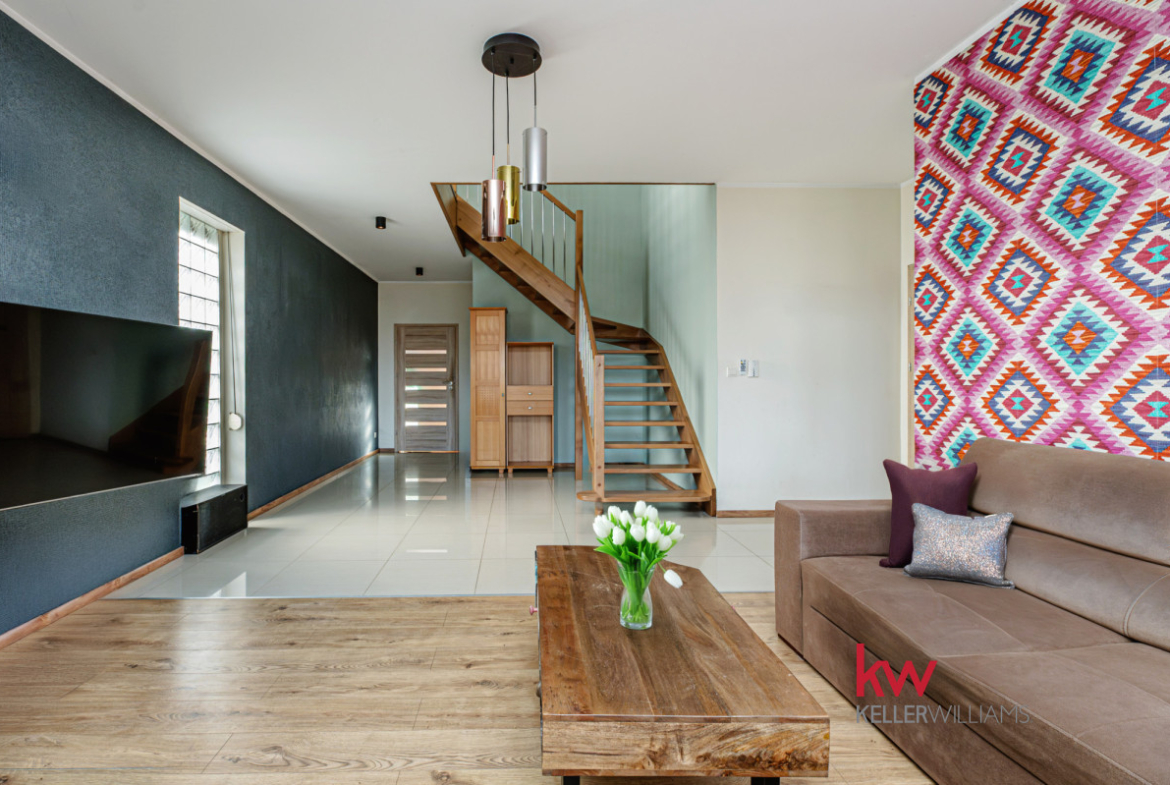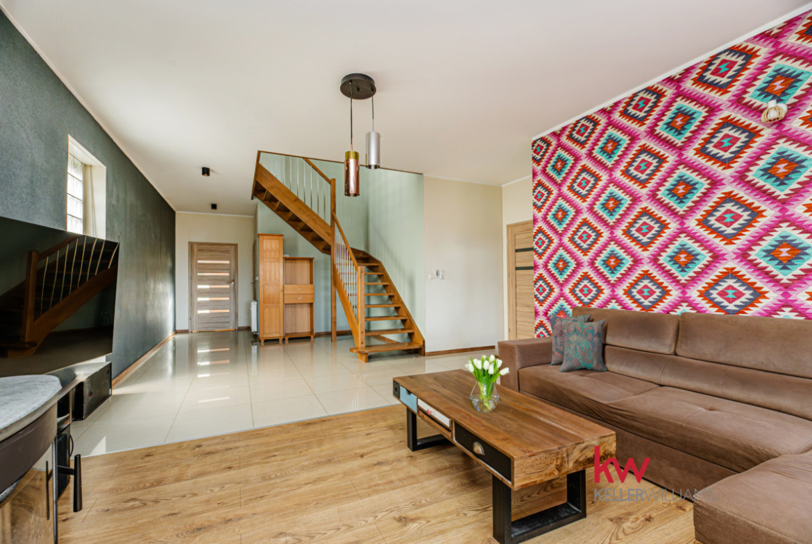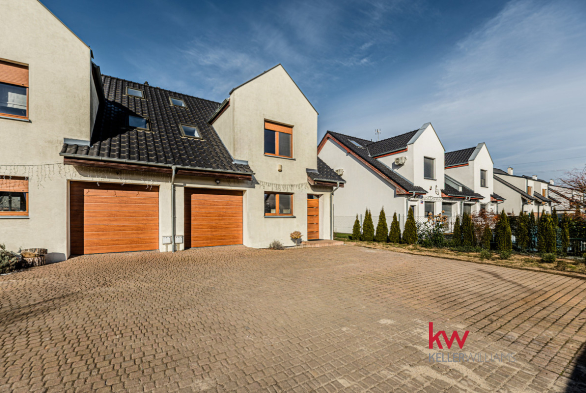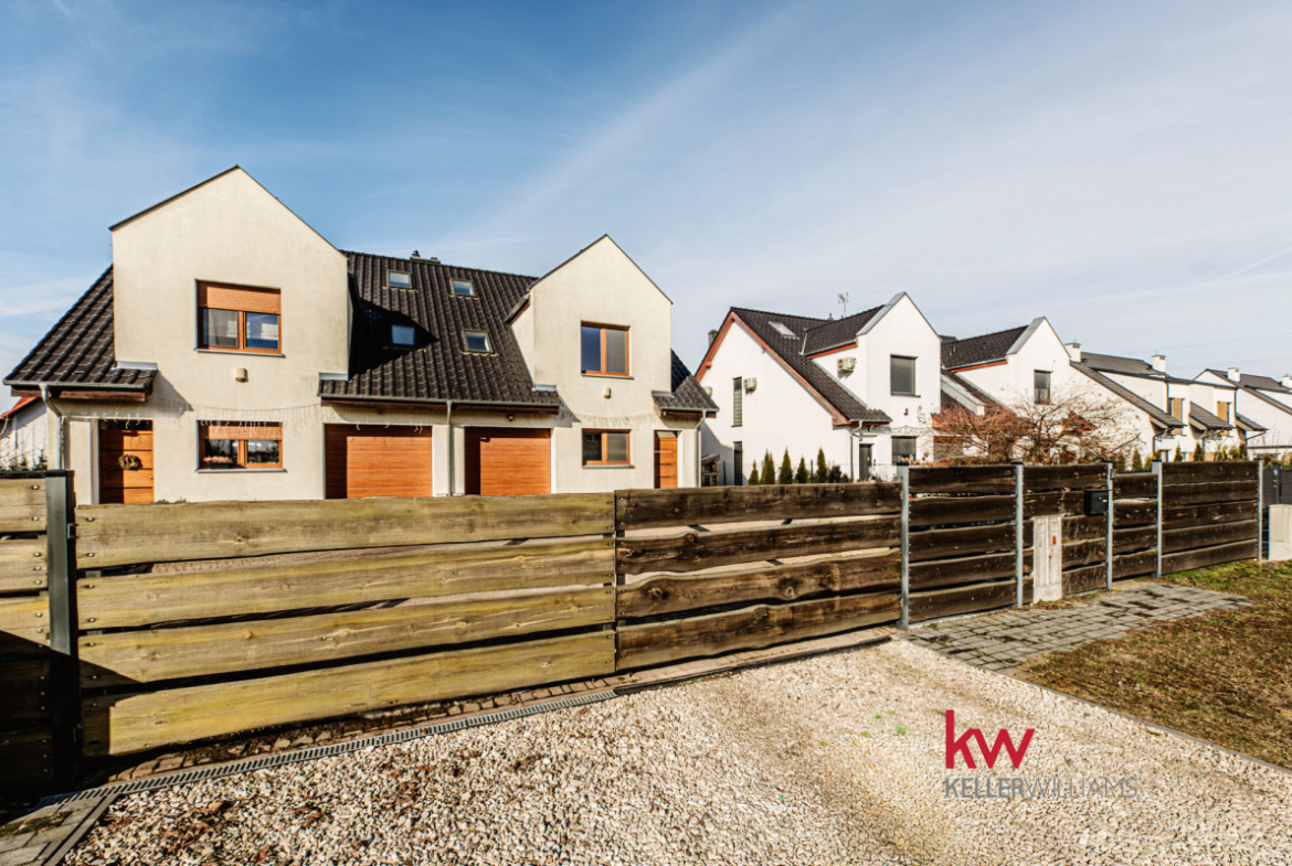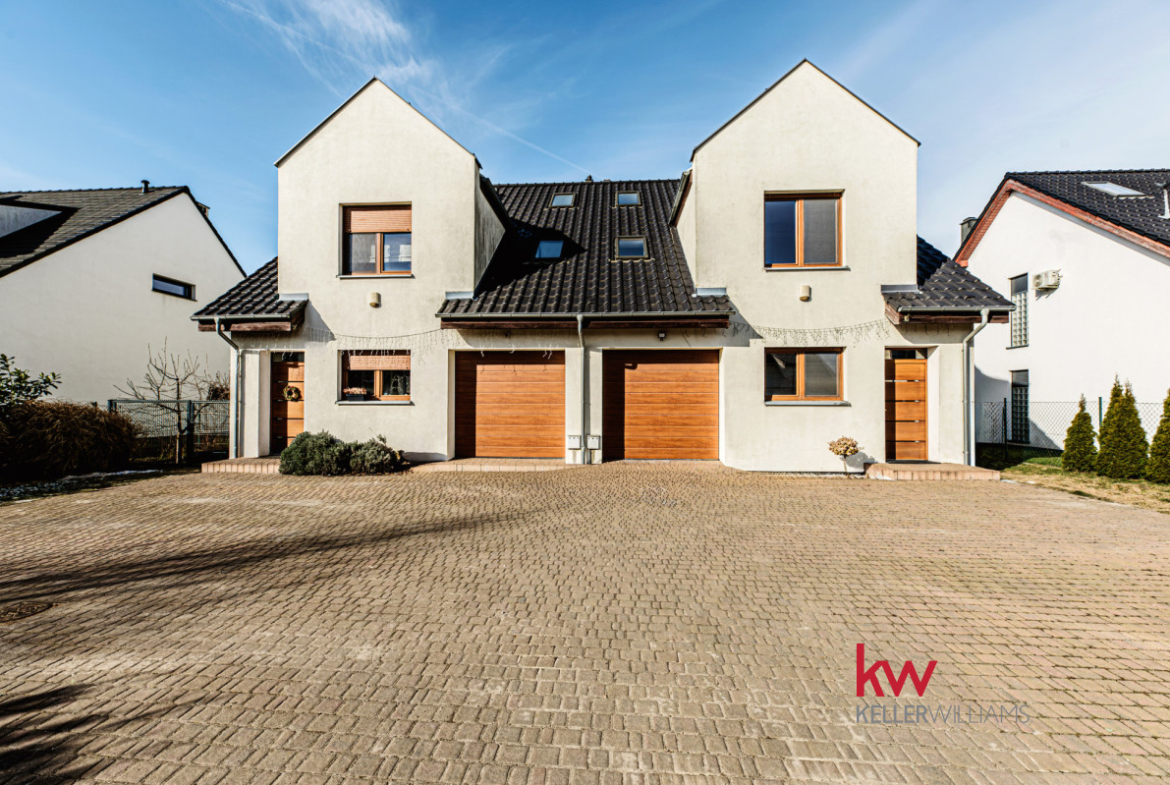 Na sprzedaż funkcjonalny dom w zabudowie bliźniaczej o powierzchni całkowitej 161,94 m² (144,39 m² użytkowej), położony na ogrodzonej działce 450 m² w miejscowości Rokietnica.