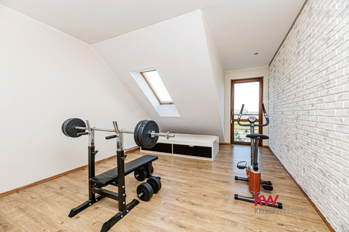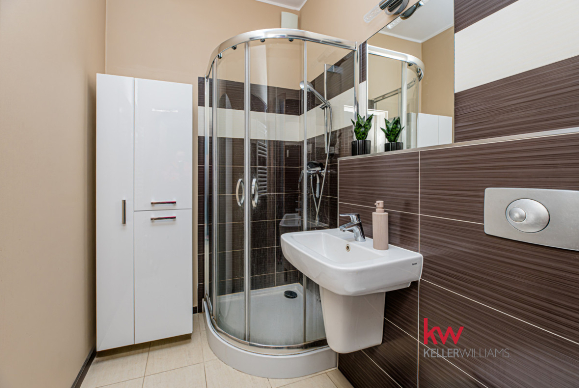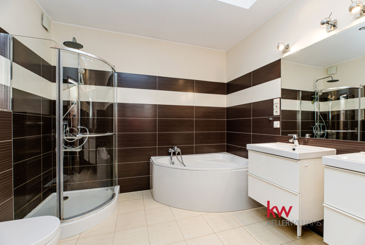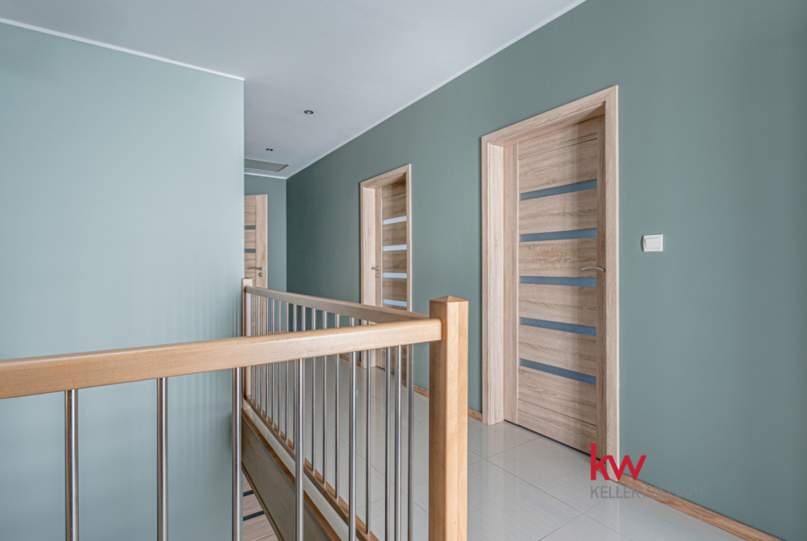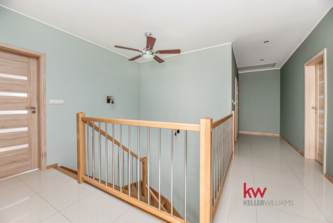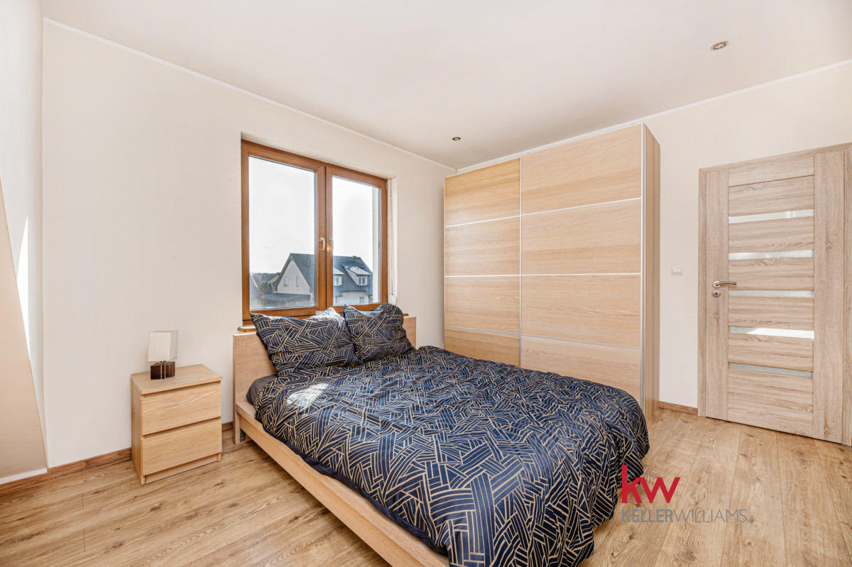 Łącznie 4 pokoje i 2 łazienki — funkcjonalny układ dla rodziny lub osób pracujących częściowo z domu.