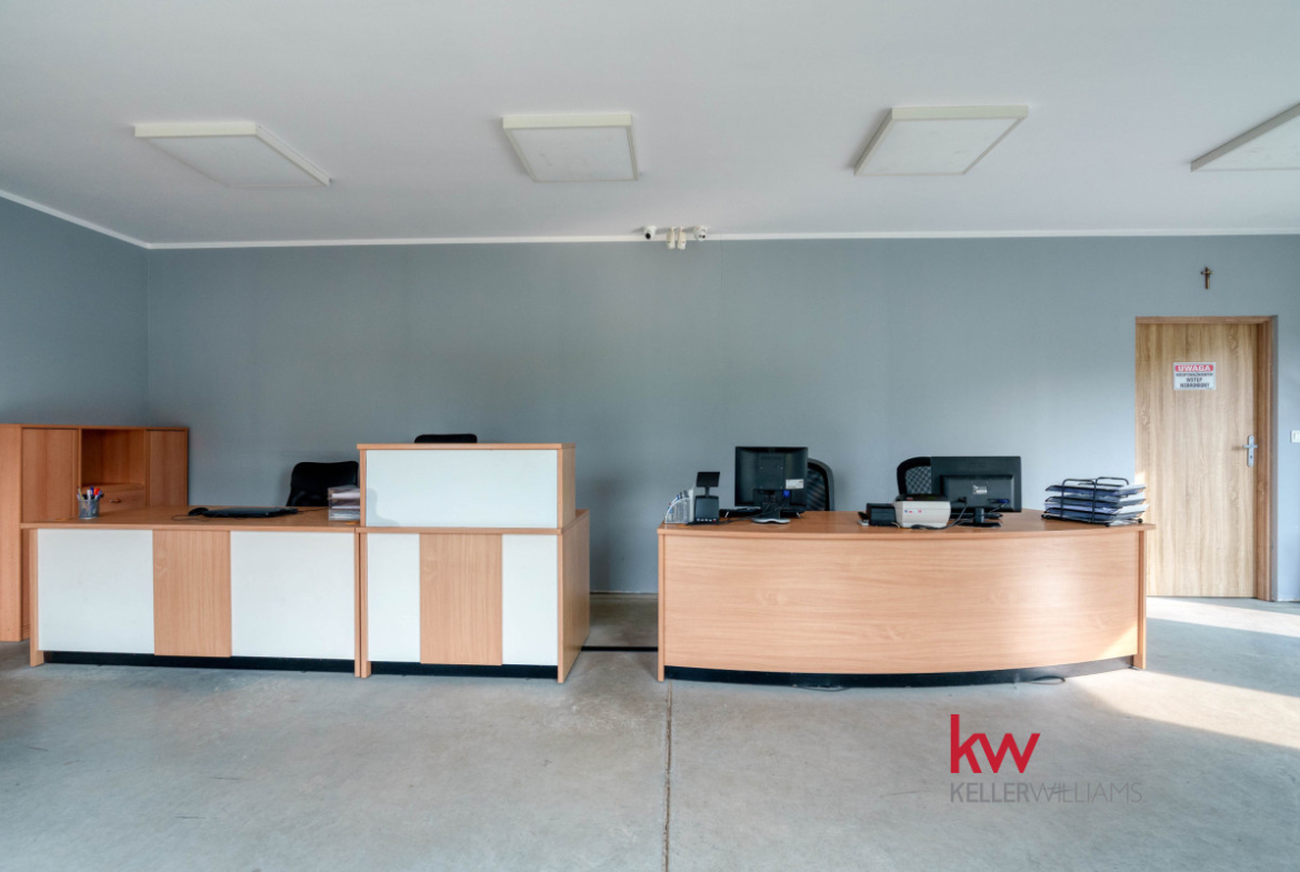 Powierzchnia biurowo-socjalna: 75 m² – w pełni przystosowana do obsługi pracowników i prowadzenia zaplecza administracyjnego.