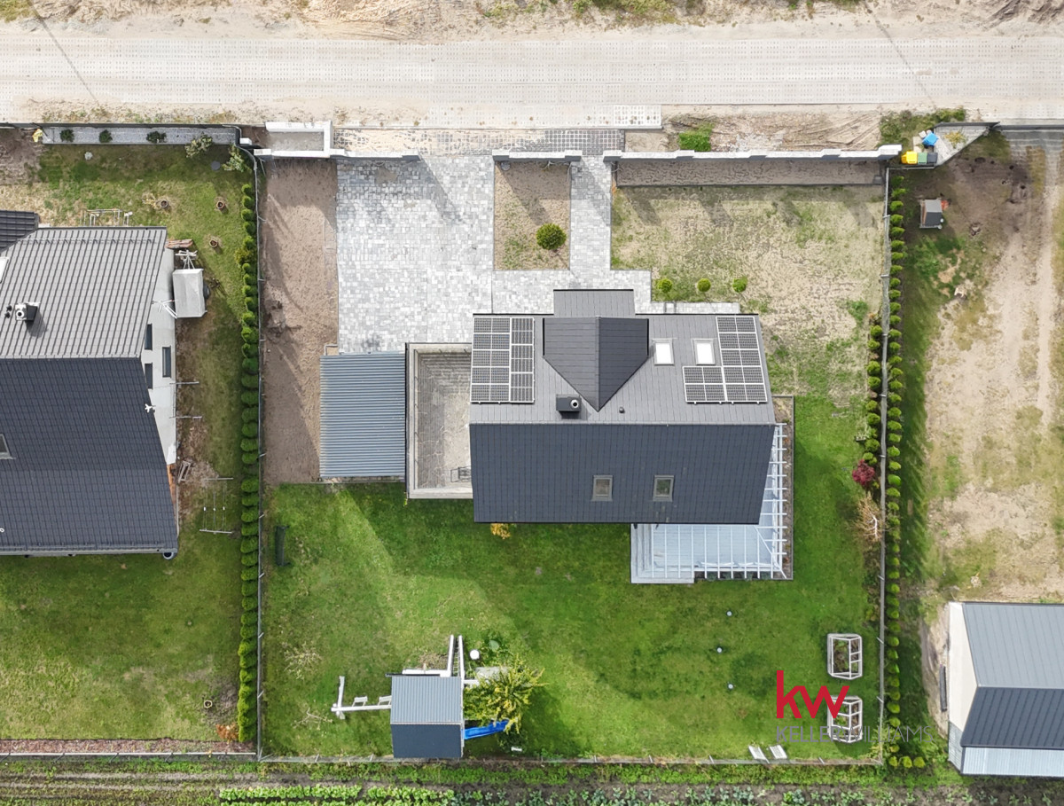 DZIAŁKA: Regularny kształt (ok. 30m x 30m) i pełne ogrodzenie zapewniające prywatność i bezpieczeństwo. Zagospodarowany podjazd (polbruk).