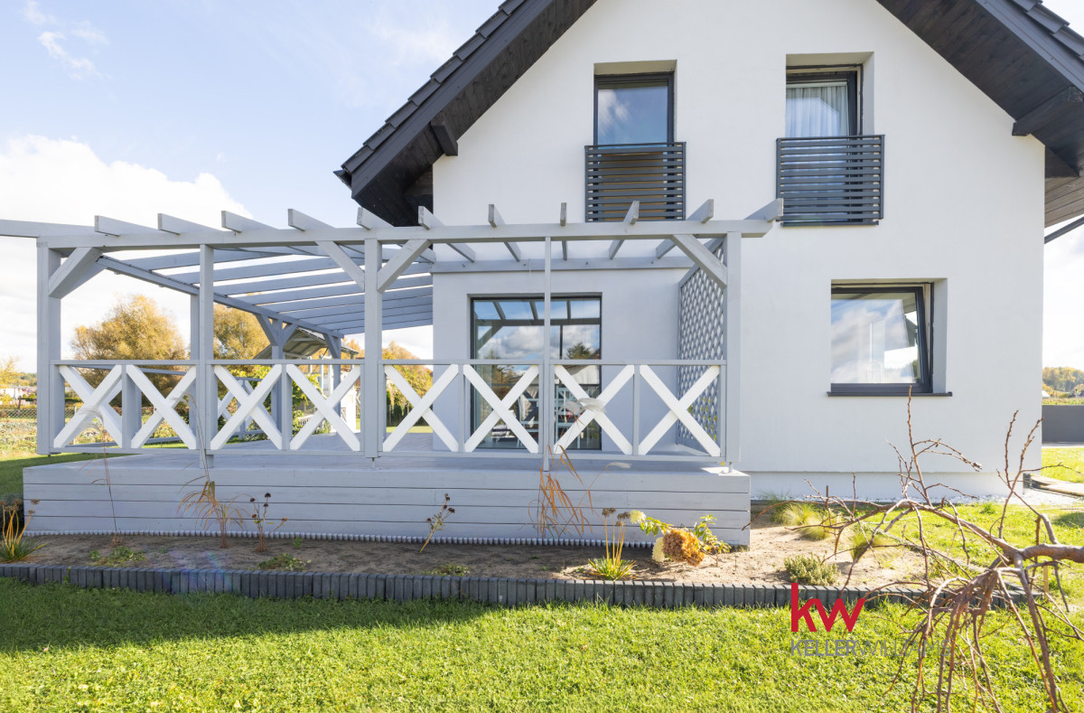 Dom jest gotowy do zamieszkania, umeblowany i wykończony materiałami premium, co pozwala natychmiast cieszyć się nowym życiem.