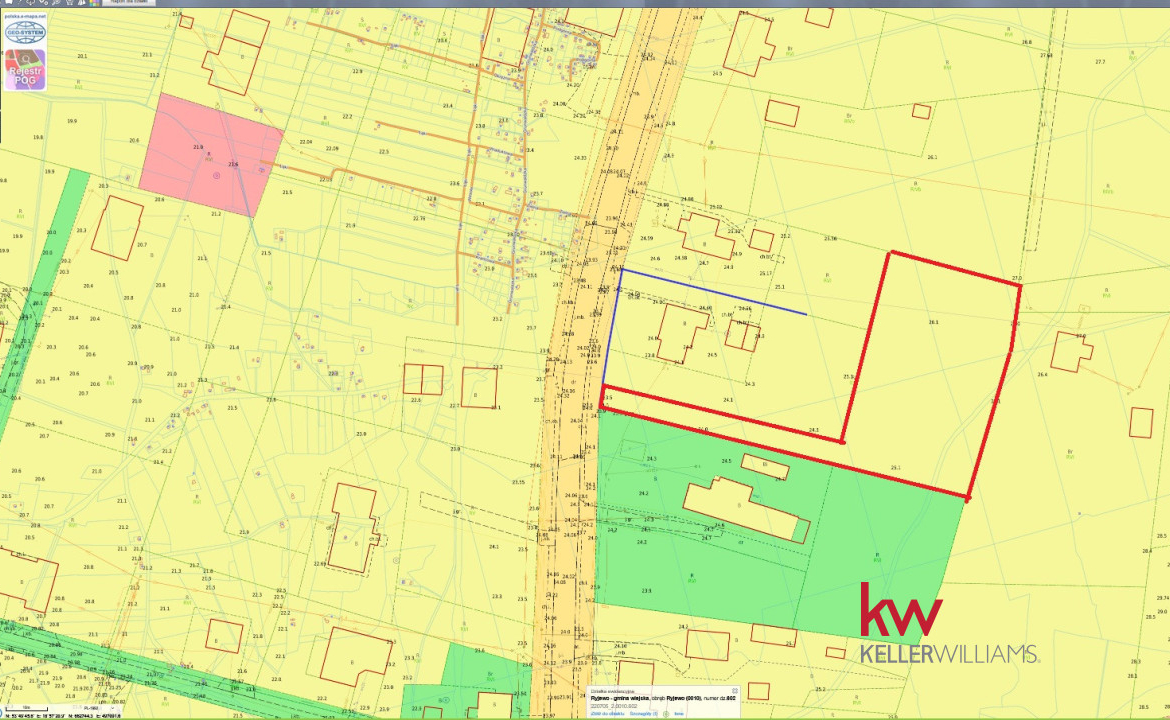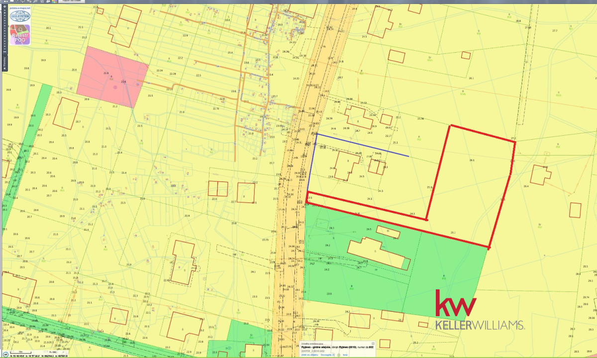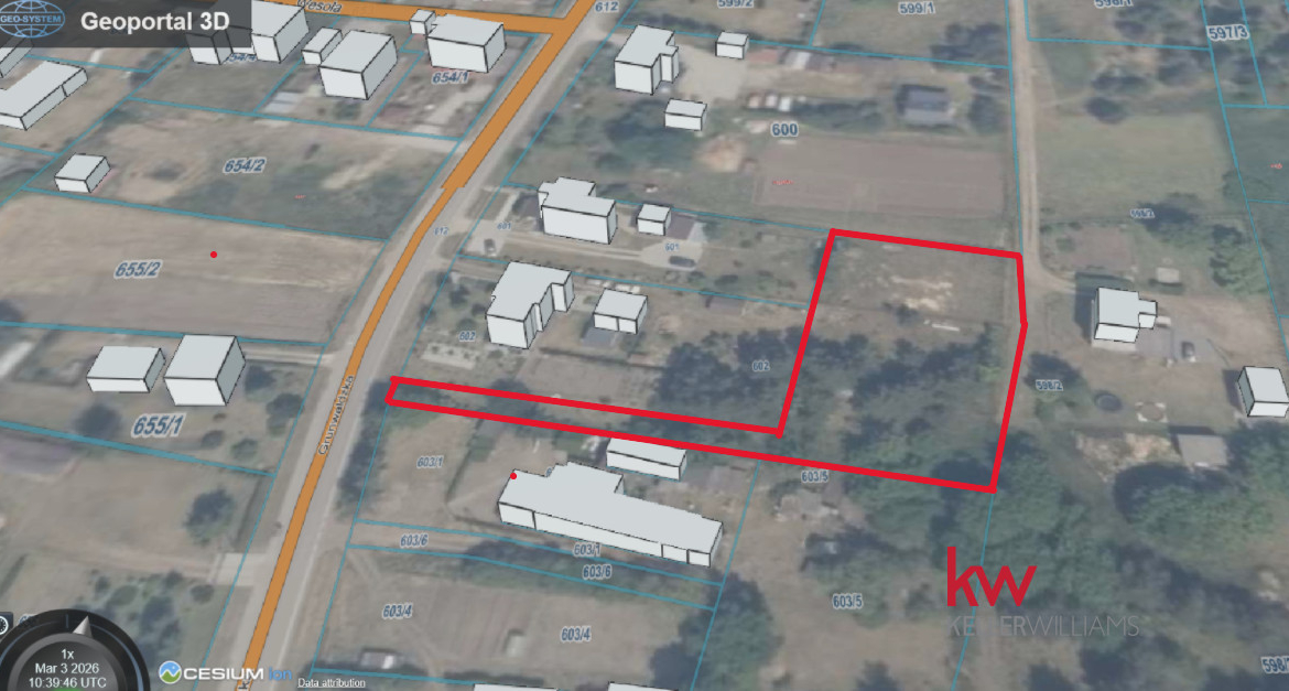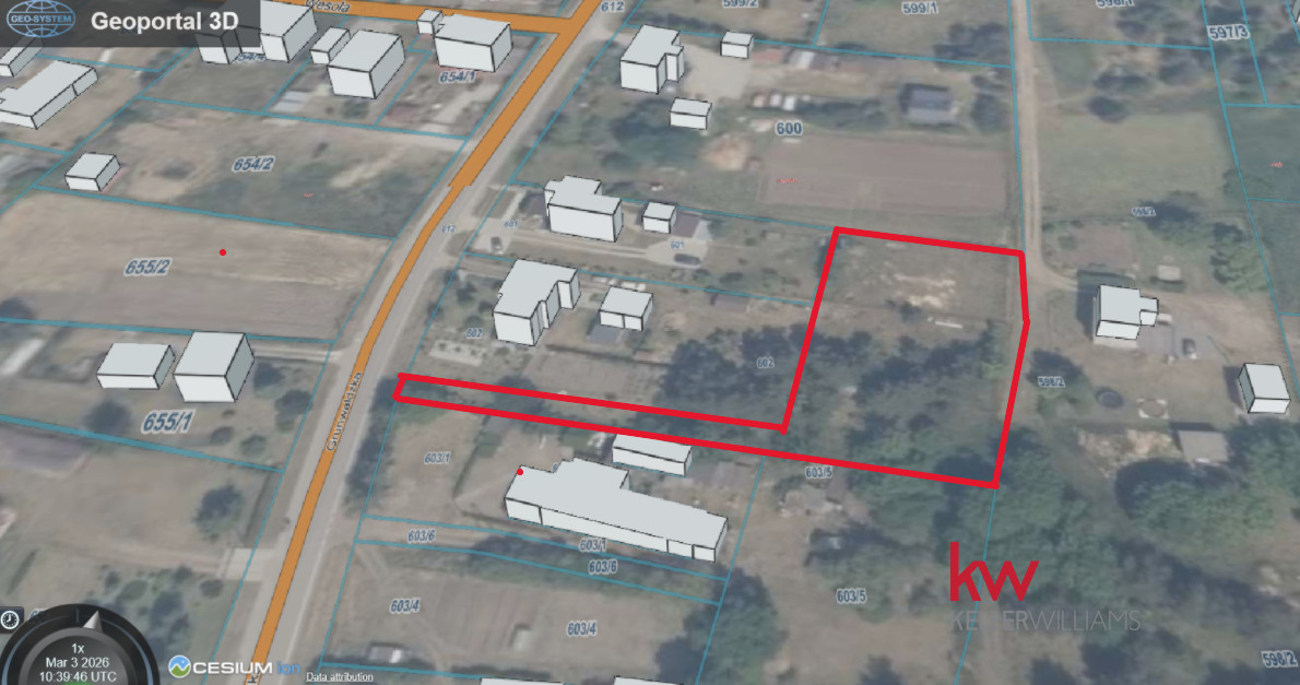 • Numer działki: Wyodrębniona z działki nr 602 – wydzielona z większego terenu i ogrodzona siatką.