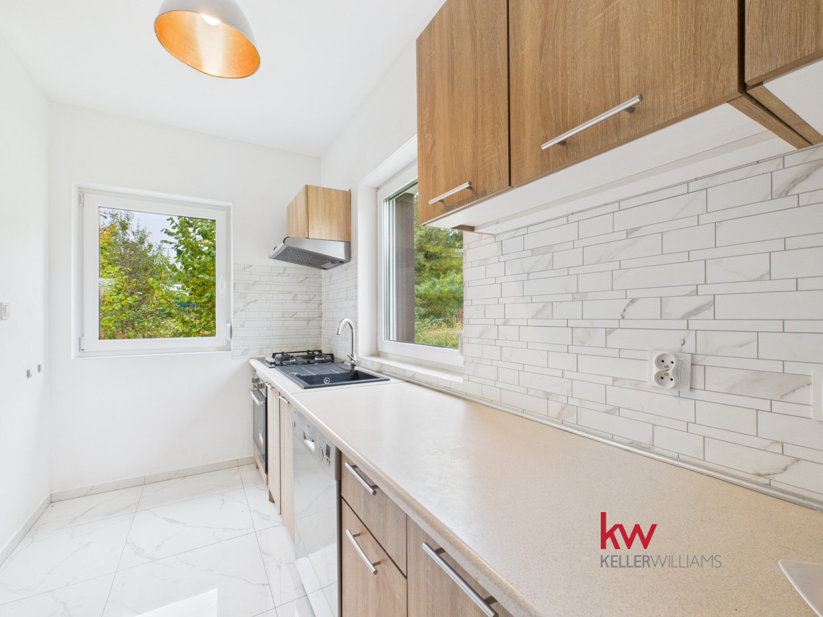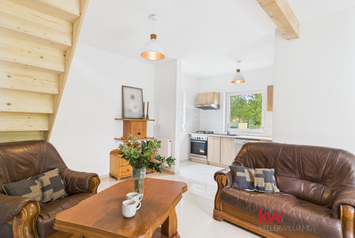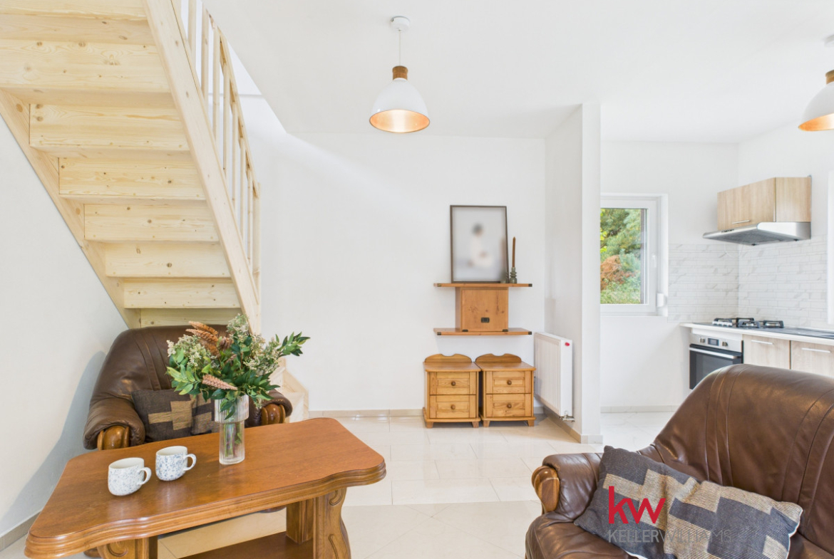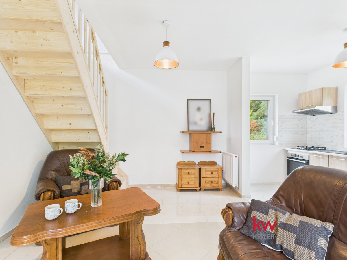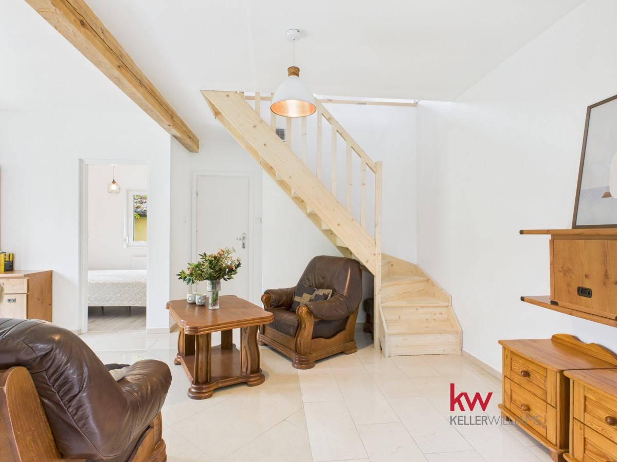 • Parter składa się z w pełni wyposażonej kuchni, umeblowanego salonu, sypialni, łazienki z prysznicem, korytarza oraz kotłowni.