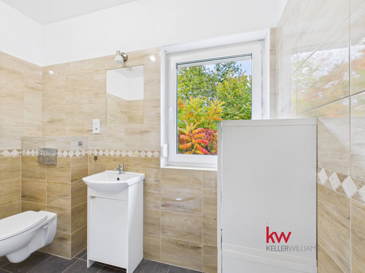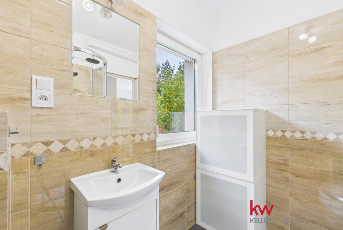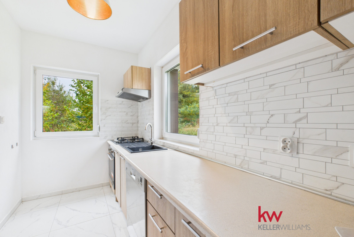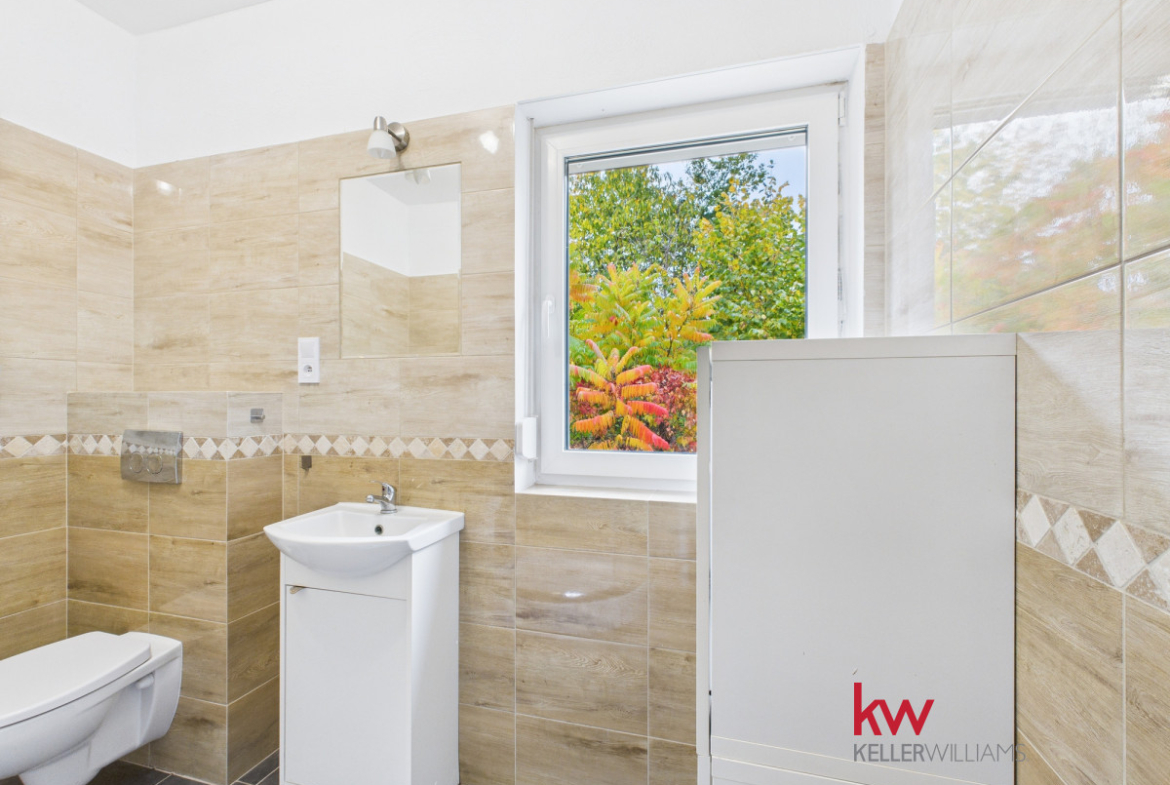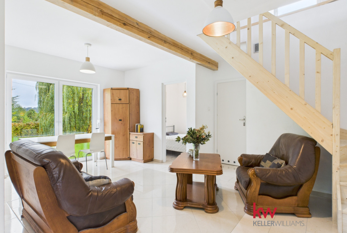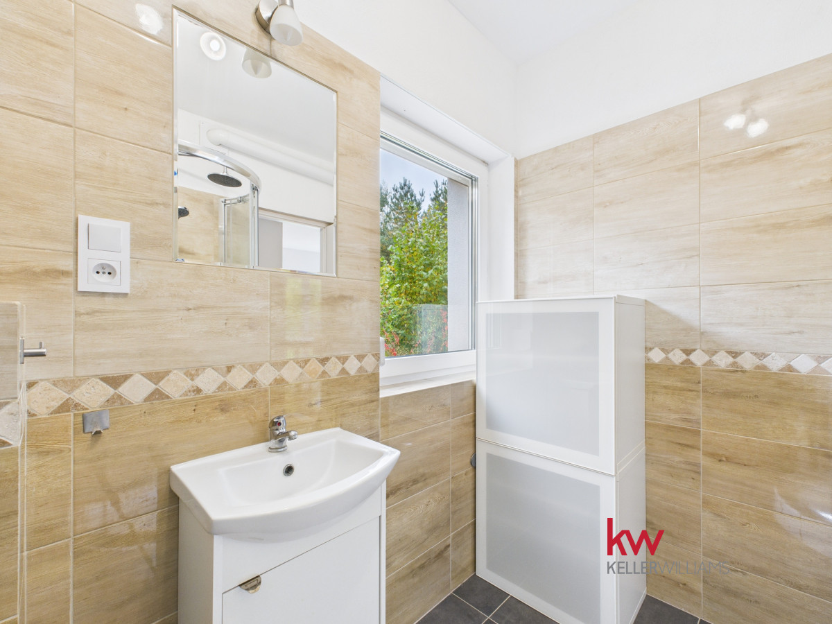 • Parter składa się z w pełni wyposażonej kuchni, umeblowanego salonu, sypialni, łazienki z prysznicem, korytarza oraz kotłowni.