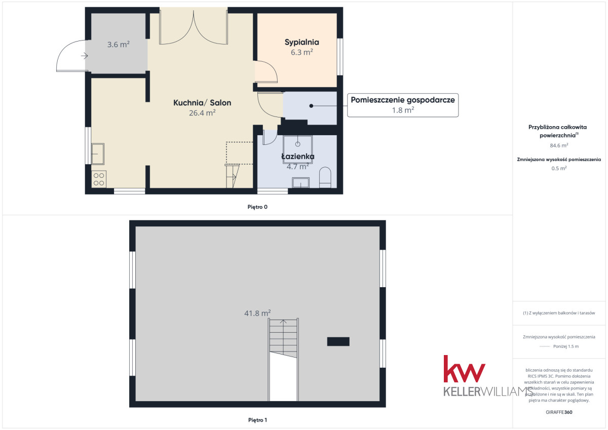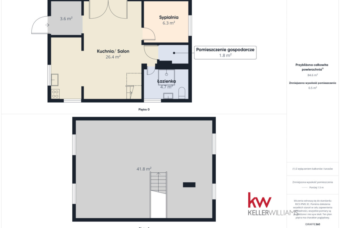 • Poddasze (16 m²) pełni funkcję strychu i stanowi dodatkową przestrzeń do przechowywania.