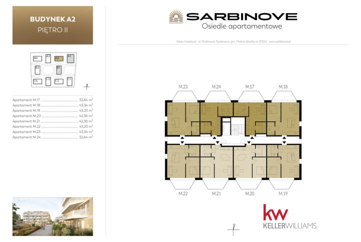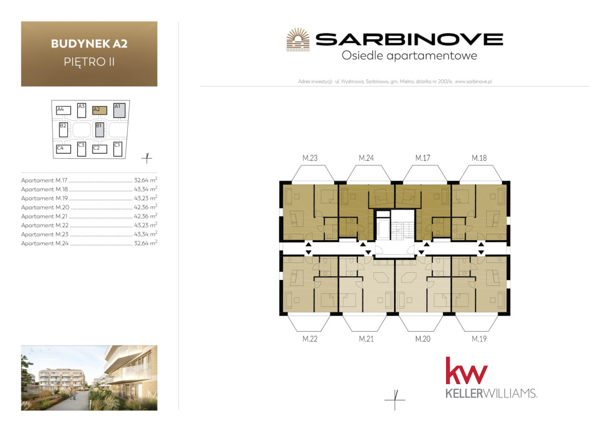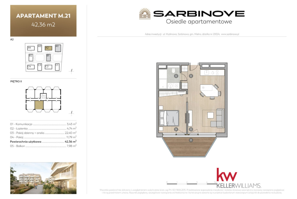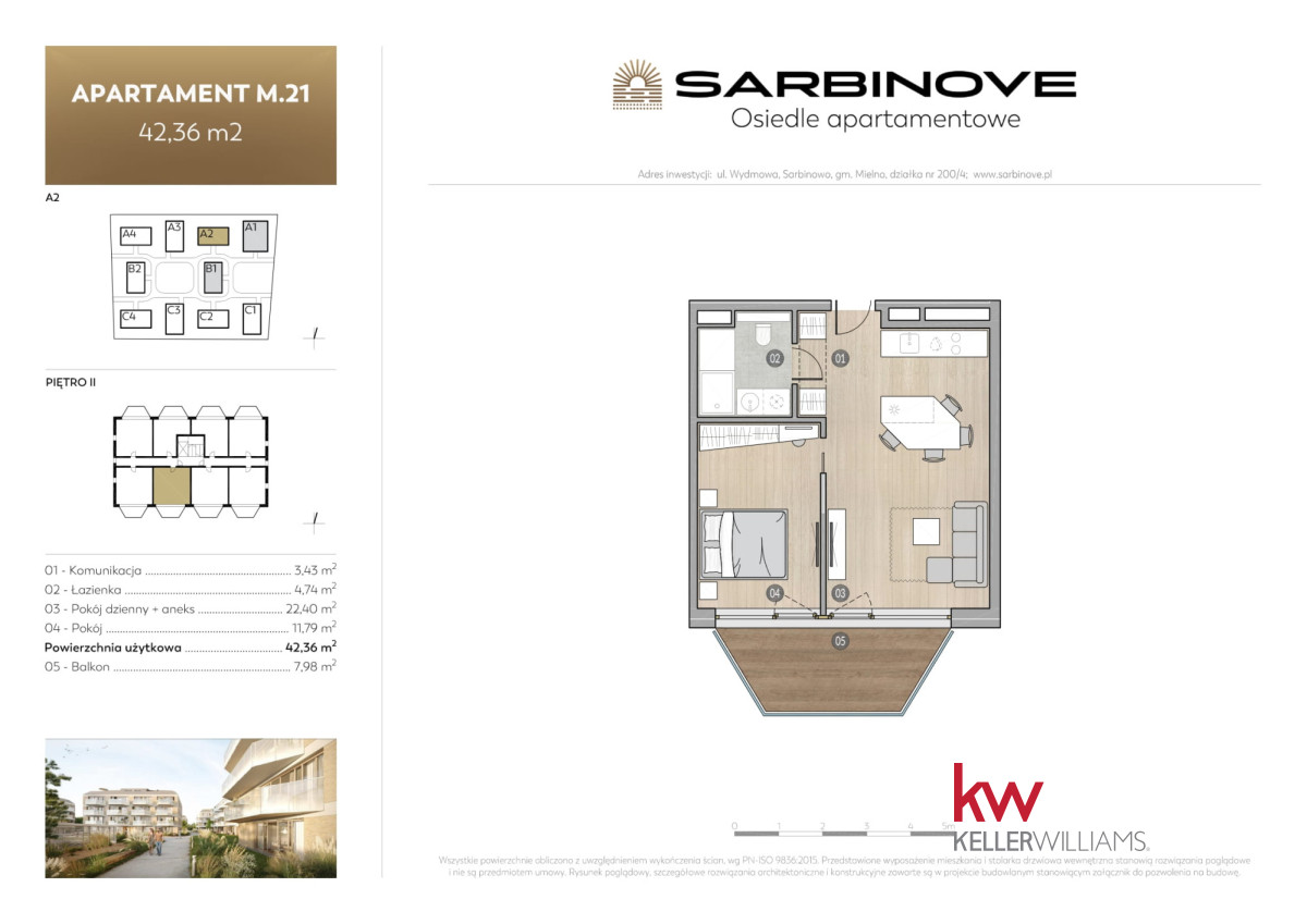Apartament w budynku A2, M21 o powierzchni 41,96 m² składa się z: