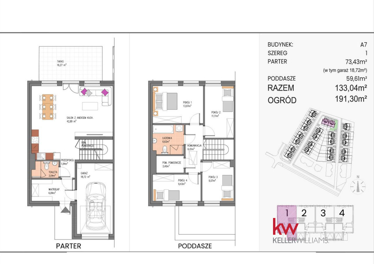 – Garaż w bryle budynku + 2 miejsce postojowe – komfort dla domowników i gości