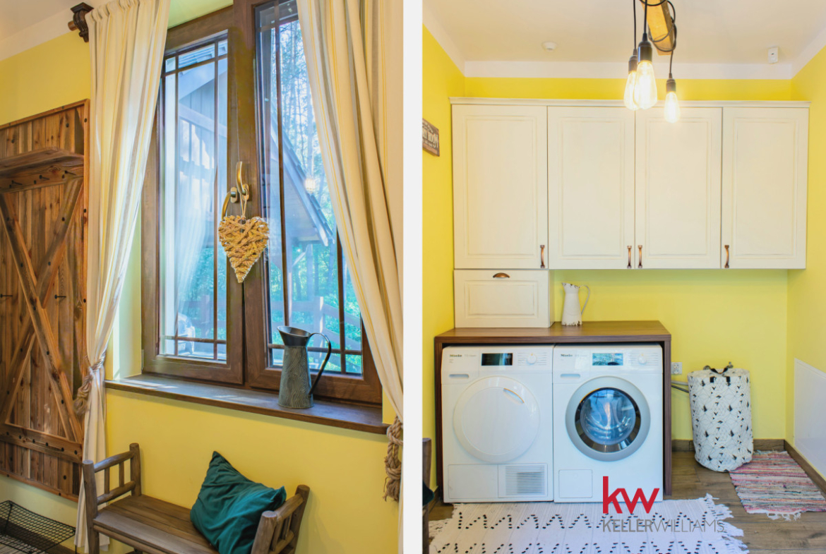 • Stylowe, wyjątkowe wnętrze z dużą ilością naturalnego drewna: drewniane schody, poręcze, drzwi, okna i widoczne belki sufitowe tworzą ciepły, przytulny klimat