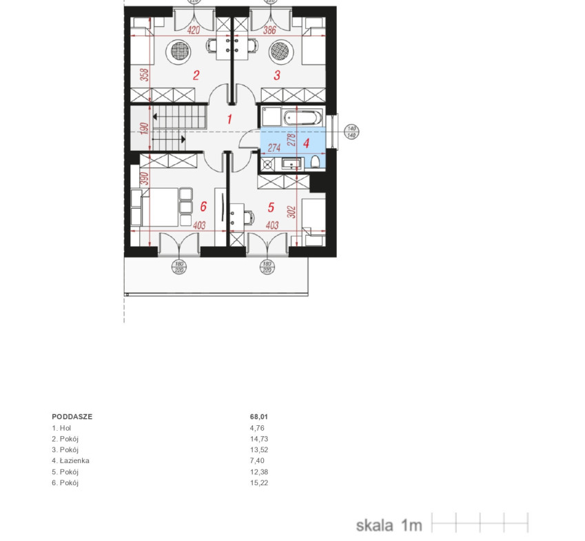 1 PIĘTRO – 68,01 m²: