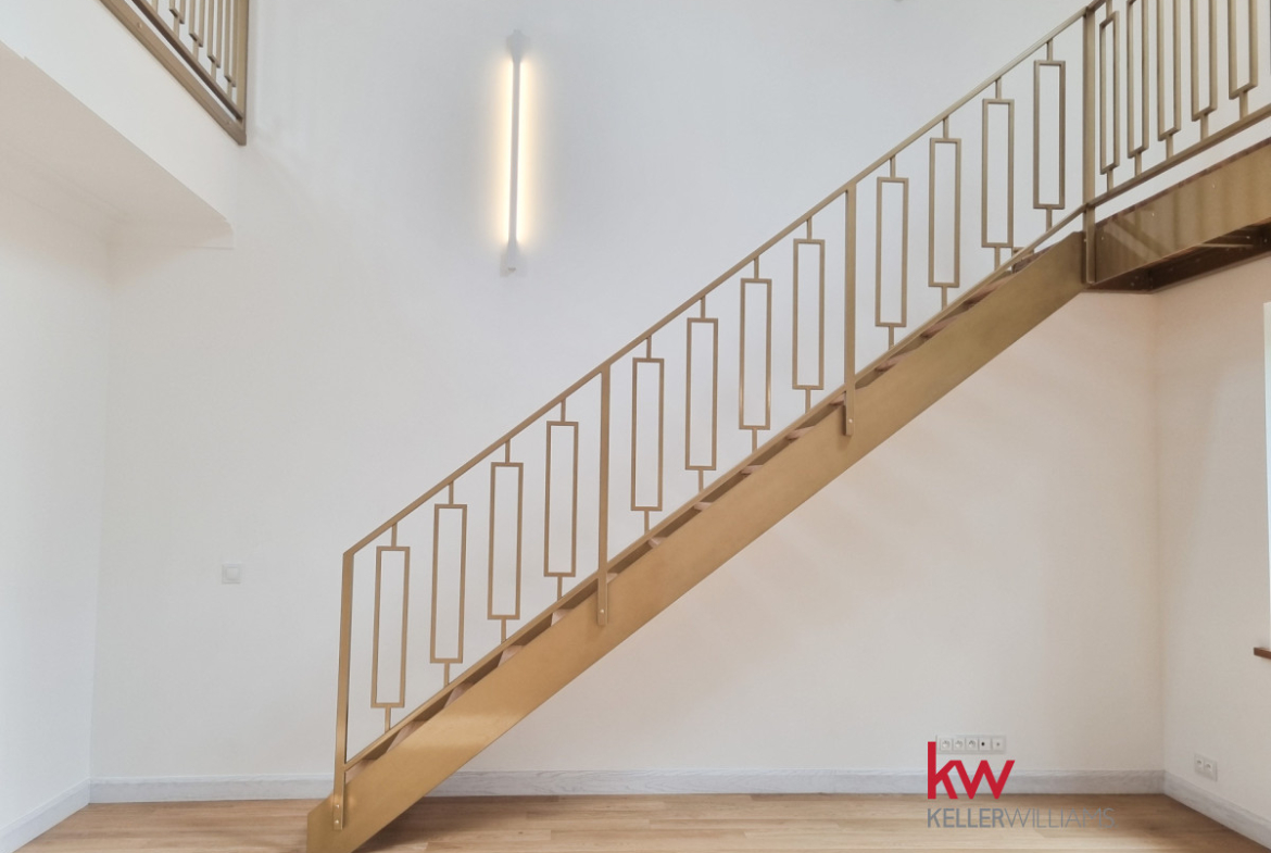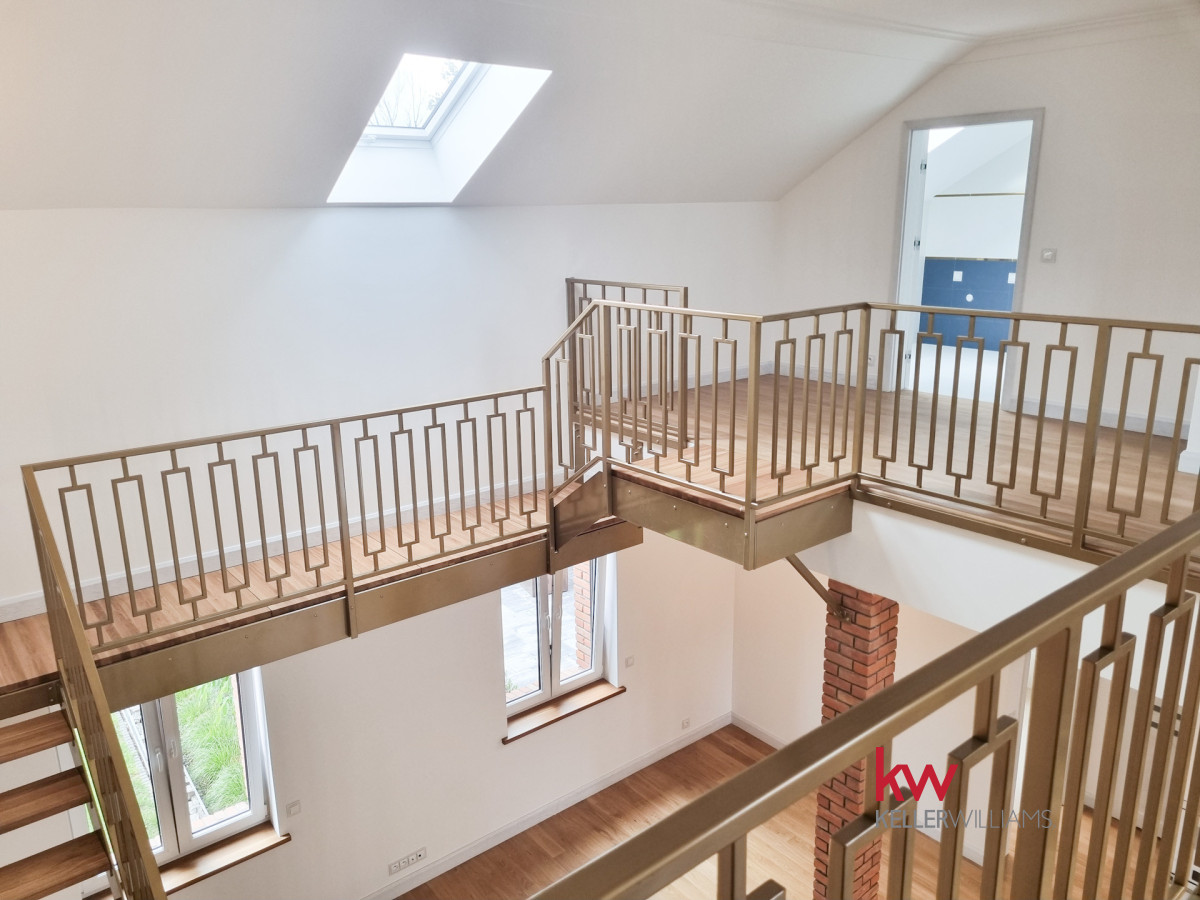 Na poziomie drugim: duży zamykany pokój – sypialnia oraz część otwarta, mogąca służyć jako kolejny pokój (możliwość wyodrębnienia osobnego pokoju ok. 24 m2) lub biuro oraz kolejna, piękna i funkcjonalna łazienka.