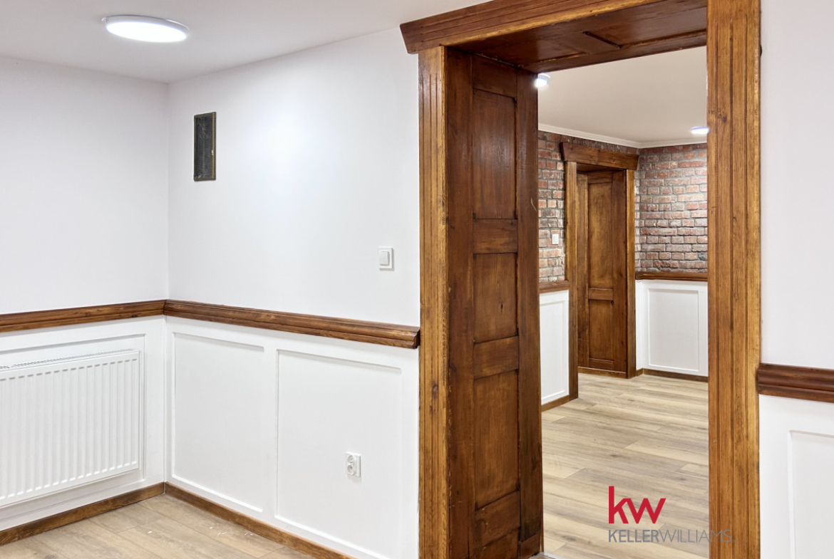 Prezentowany lokal idealnie sprawdzi się na biuro, punkt usługowy, poradnie, fizjoterapię, siedzibę fundacji czy stowarzyszenia oraz gastronomię (jedno pomieszczenie przystosowane pod ewentualną kuchnię). Składa się z trzech oddzielnych pomieszczeń, korytarza oraz dwóch toalet łącznie około 100m2 klimatycznej przestrzeni.