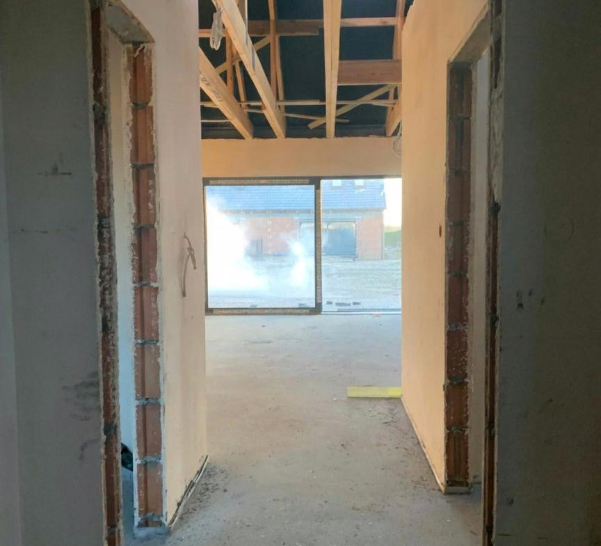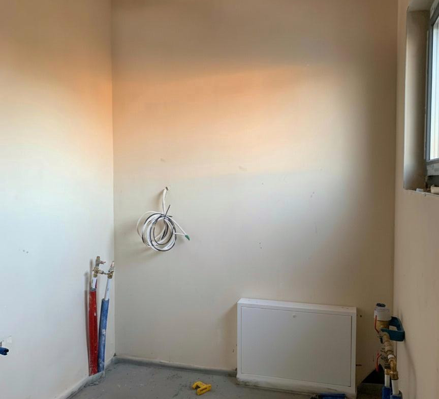 • Additionally: Partition walls, plasterboard ceiling and wall linings, electrical installation with mounting of outlets and switches, plumbing installation, and underfloor heating.