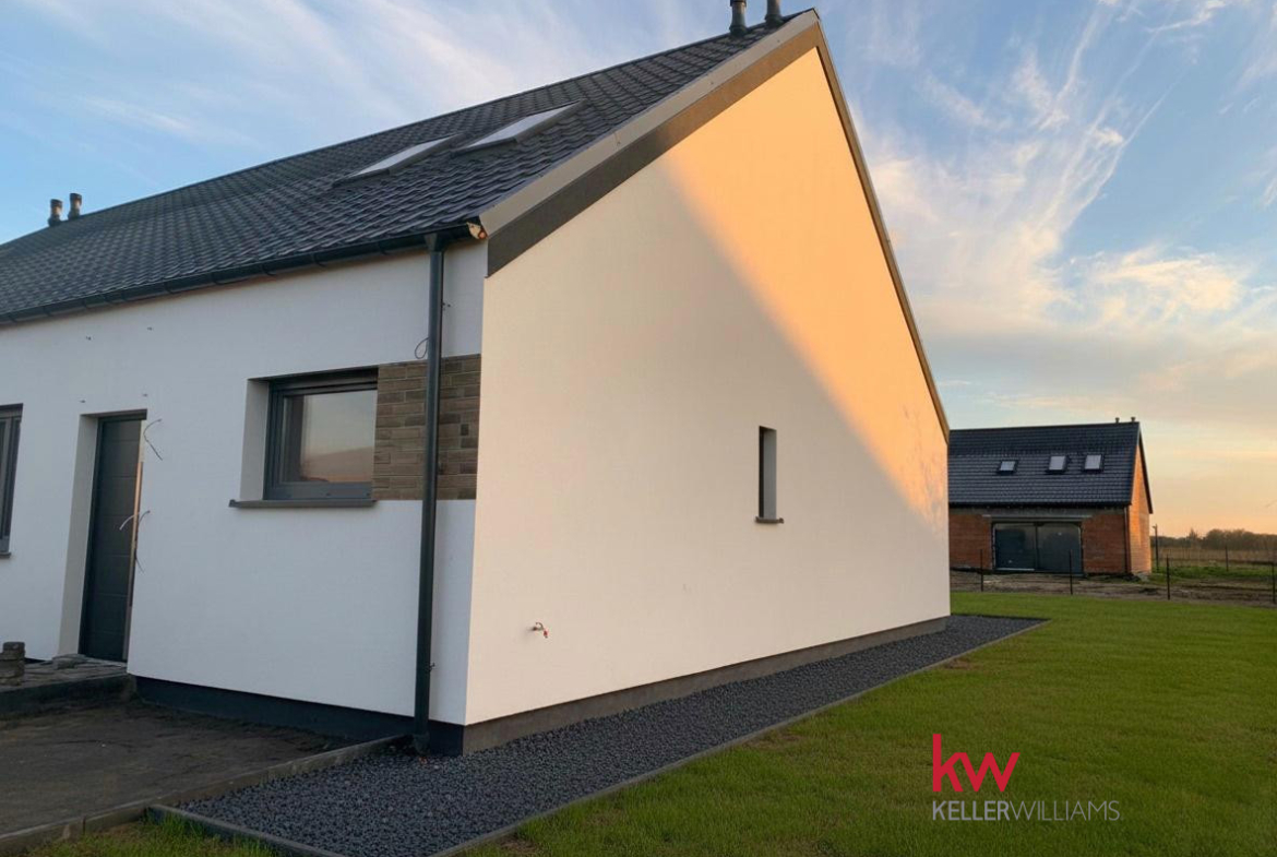 • Specification: Underfloor heating, heat pump, electric roller shutters, triple-pane windows, large sliding HST terrace window, septic tank, fencing on 3 sides, aggregate driveway, and paved terrace.