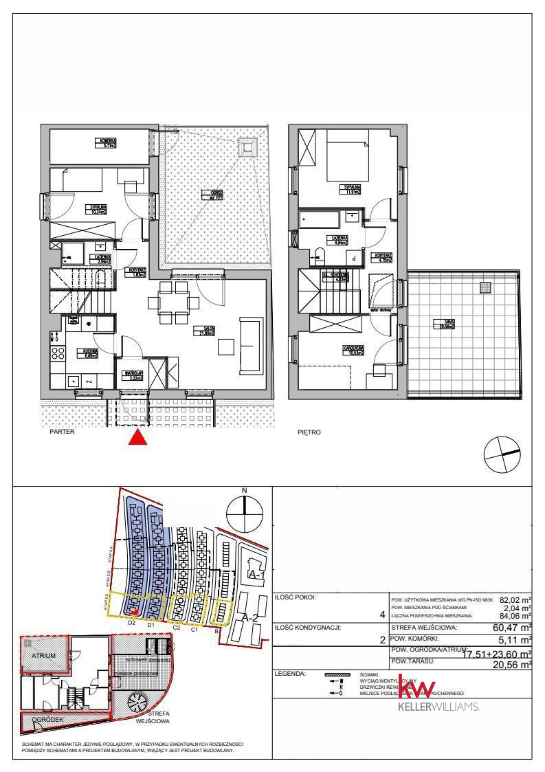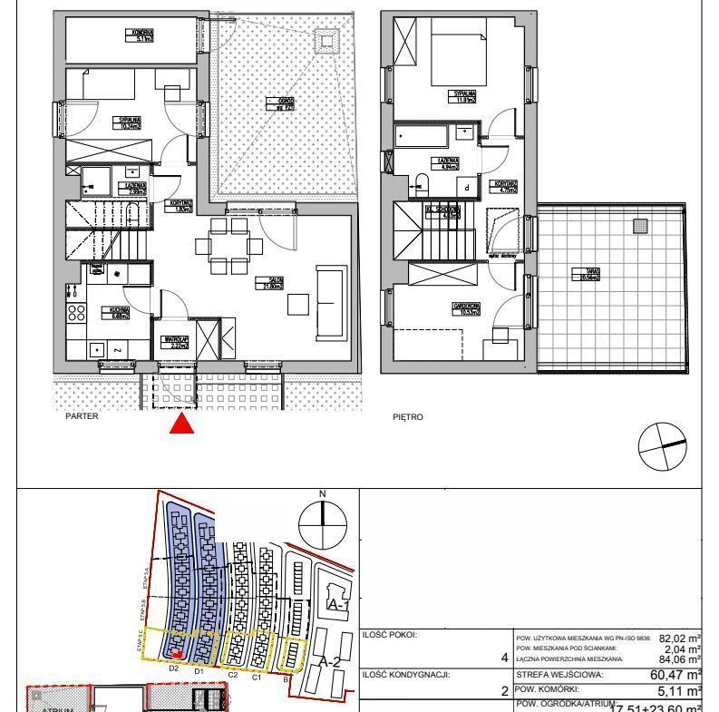 - Układ: 4 pokoje, osobna kuchnia, 2 łazienki