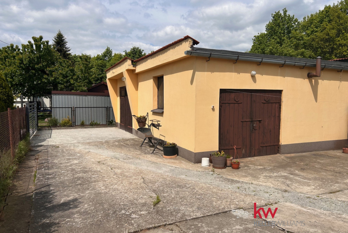Na posesji znajduje się garaż, a cała nieruchomość jest ogrodzona, co zapewnia prywatność i bezpieczeństwo.