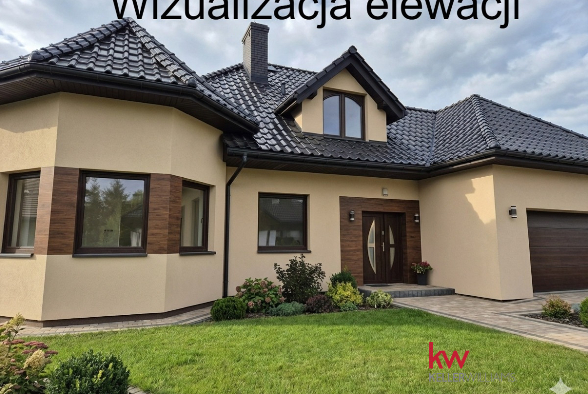 Wygoda: Salon połączony z kuchnią, duży garaż z bramą automatyczną, automatyczne rolety zewnętrzne.