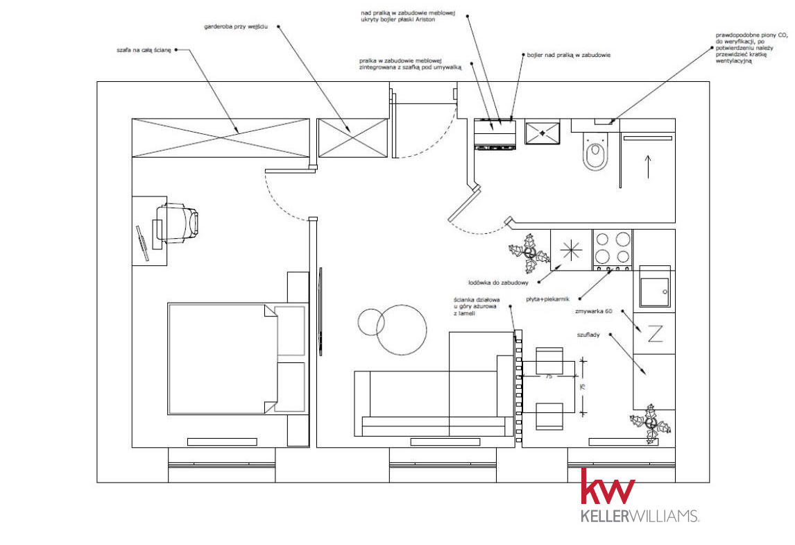 Mieszkanie po generalnym remoncie – nowe instalacje elektryczne i hydrauliczne, nowe ściany, sufity, podłogi, drzwi. Ogrzewanie miejskie, ciepła woda z bojlera elektrycznego.