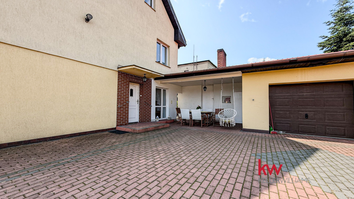 Dom posiada dwa niezależne wejścia – osobno na każdą z kondygnacji, co umożliwia komfortowe użytkowanie przez dwie rodziny lub wydzielenie części pod wynajem.