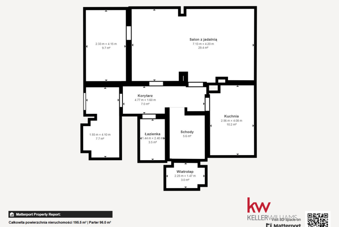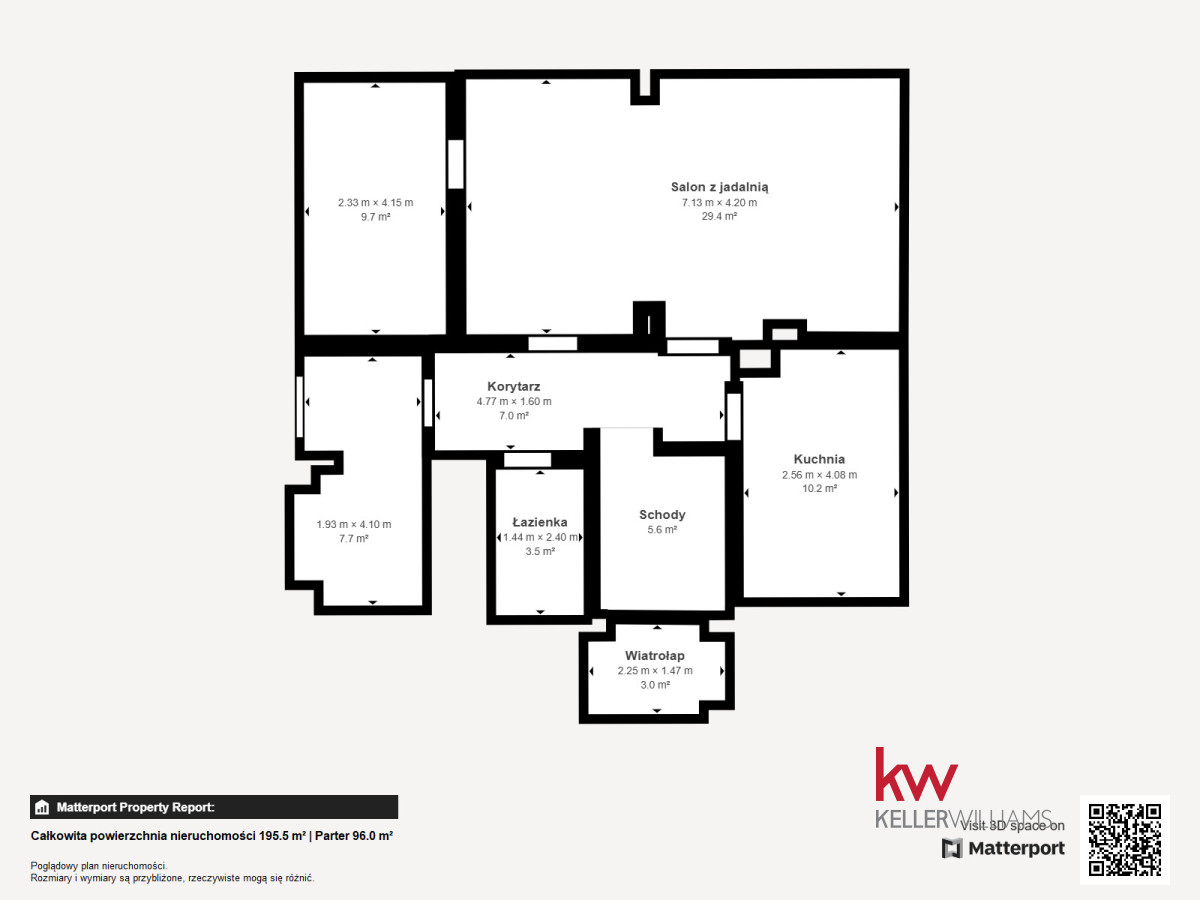 Parter: przestronny i funkcjonalny – w stanie do aranżacji, z dużym potencjałem. Znajdują się tu m.in. kuchnia, łazienka, dwa pokoje i pomieszczenia gospodarcze.