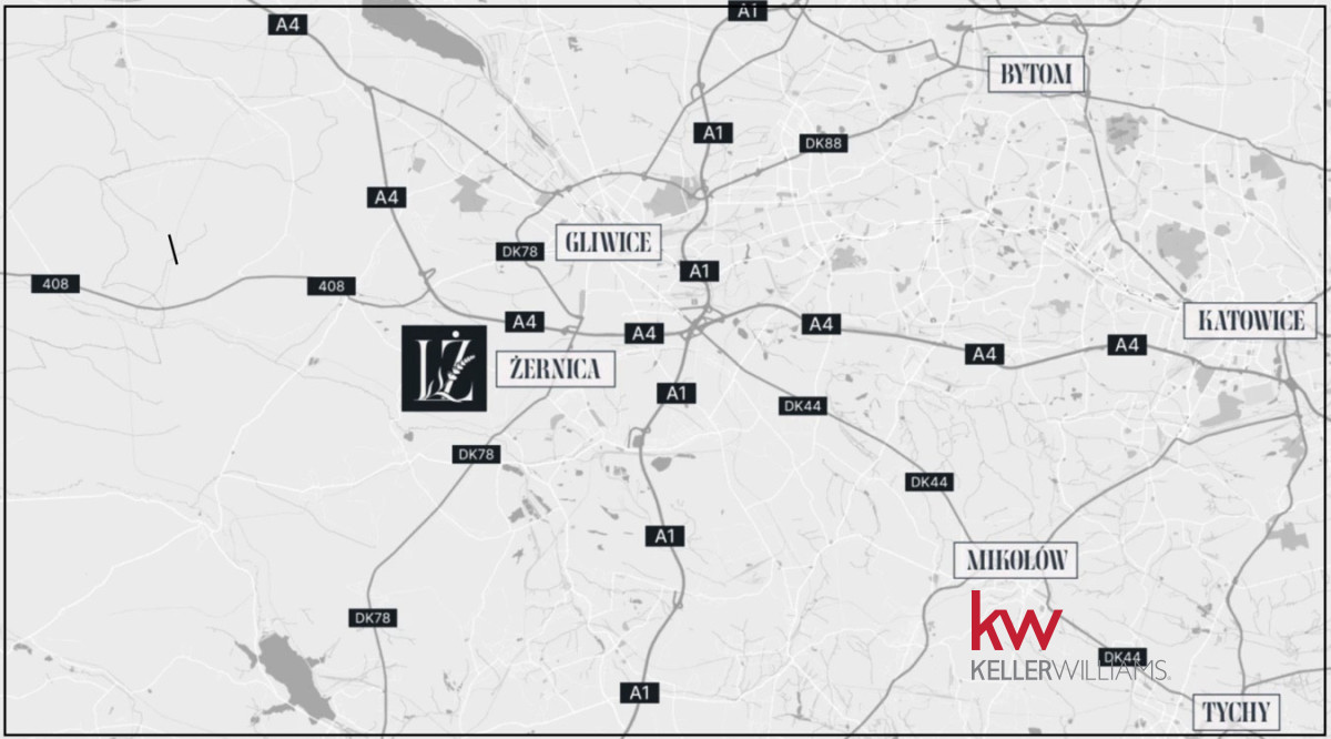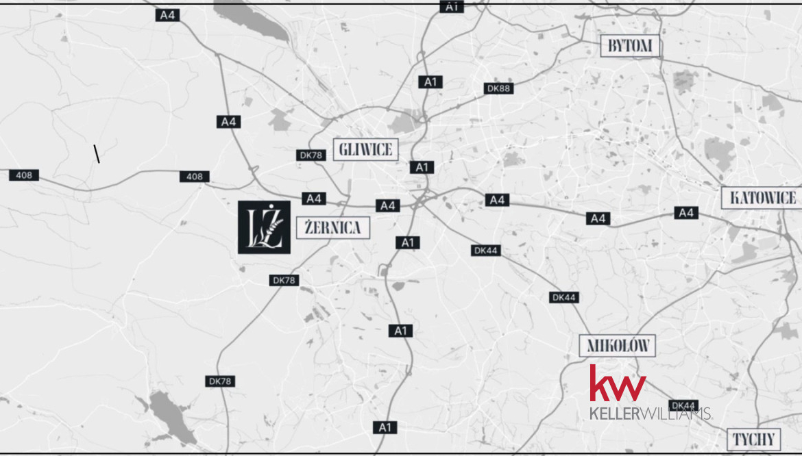 * Lokalizacja umożliwia także dogodny i szybki dojazd do autostrady A4 (6km) i A1 (9km).