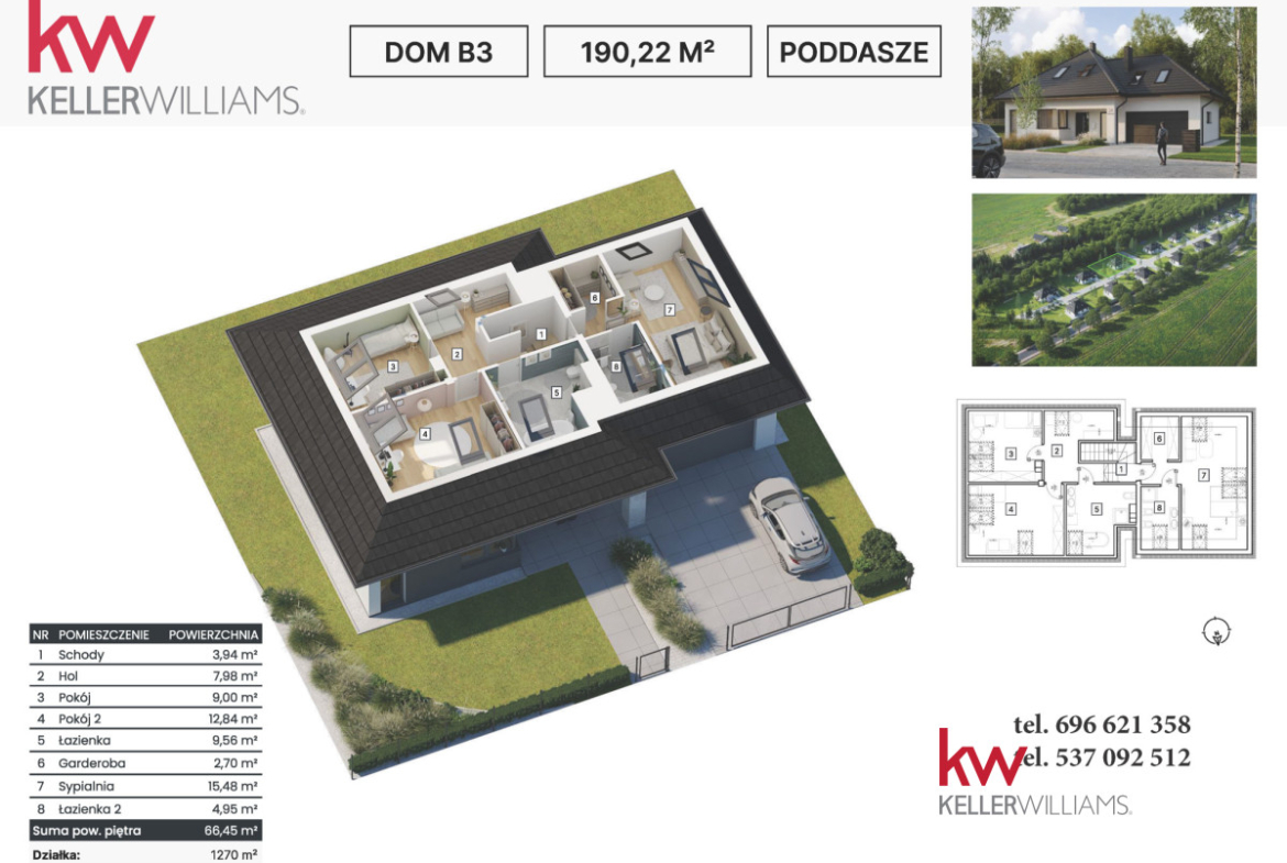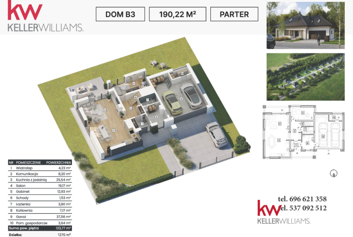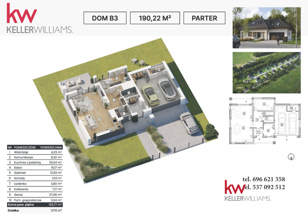 Powierzchnia budynku: 190,22 m² (wraz z garażem dwustanowiskowym)