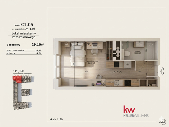 Mieszkanie 2-pokoje 48 m2 piętro I